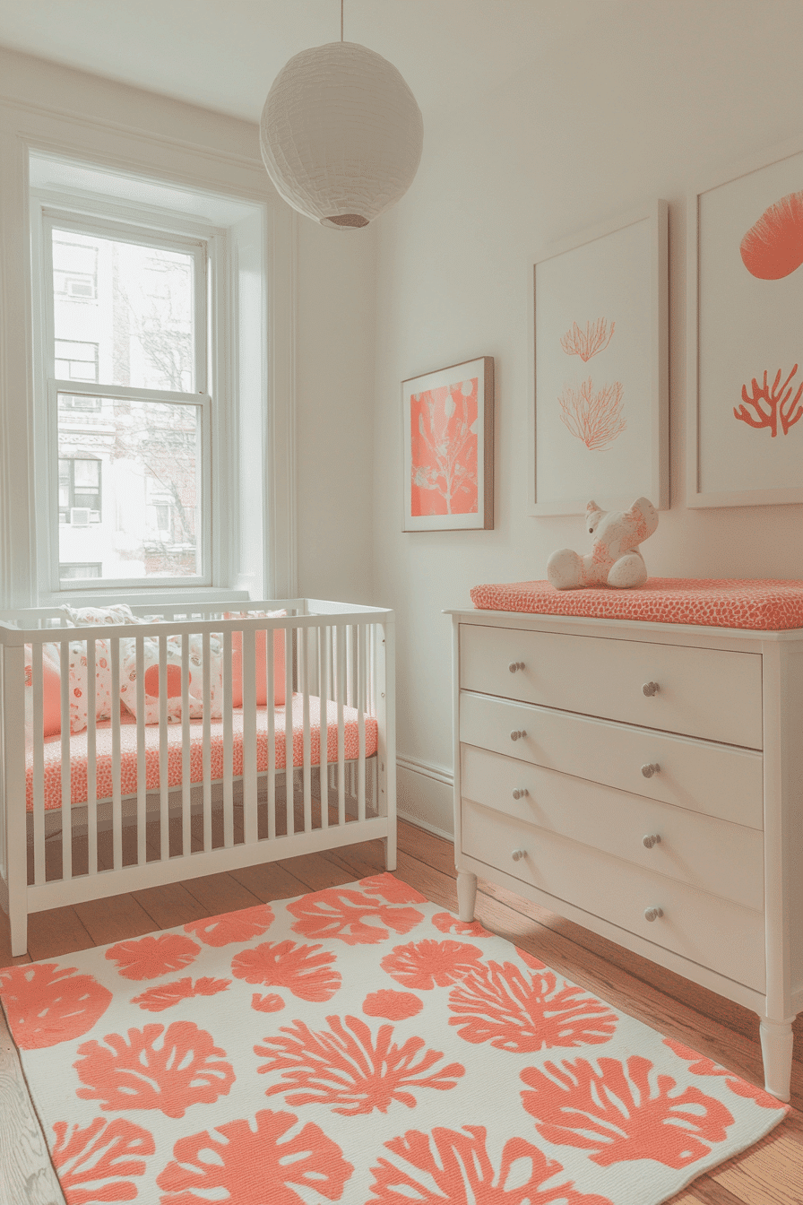 Coral accents layered thoughtfully into neutral surroundings bring baby room inspiration filled with joy and energy. The color feels playful without overpowering the room. Soft backgrounds allow coral elements to shine gently. The space feels lively and modern. This nursery design encourages creativity and warmth.
