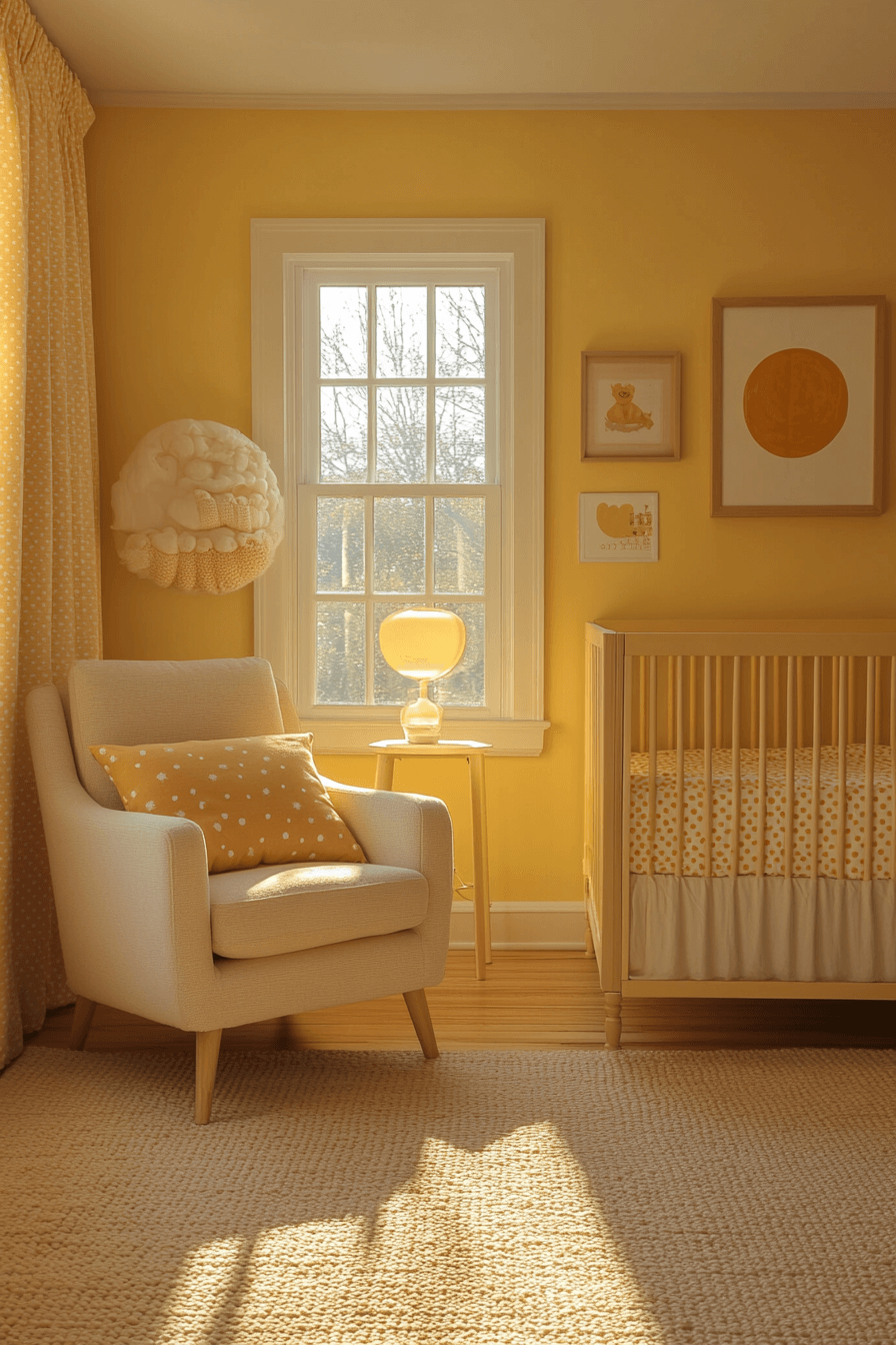 Soft yellow highlights brighten baby room inspiration with cheerful warmth that feels uplifting without overstimulation. The sunny accents add joy to a neutral base. Gentle patterns and cozy fabrics enhance the mood. The space feels positive and nurturing. This style encourages happiness and comfort.