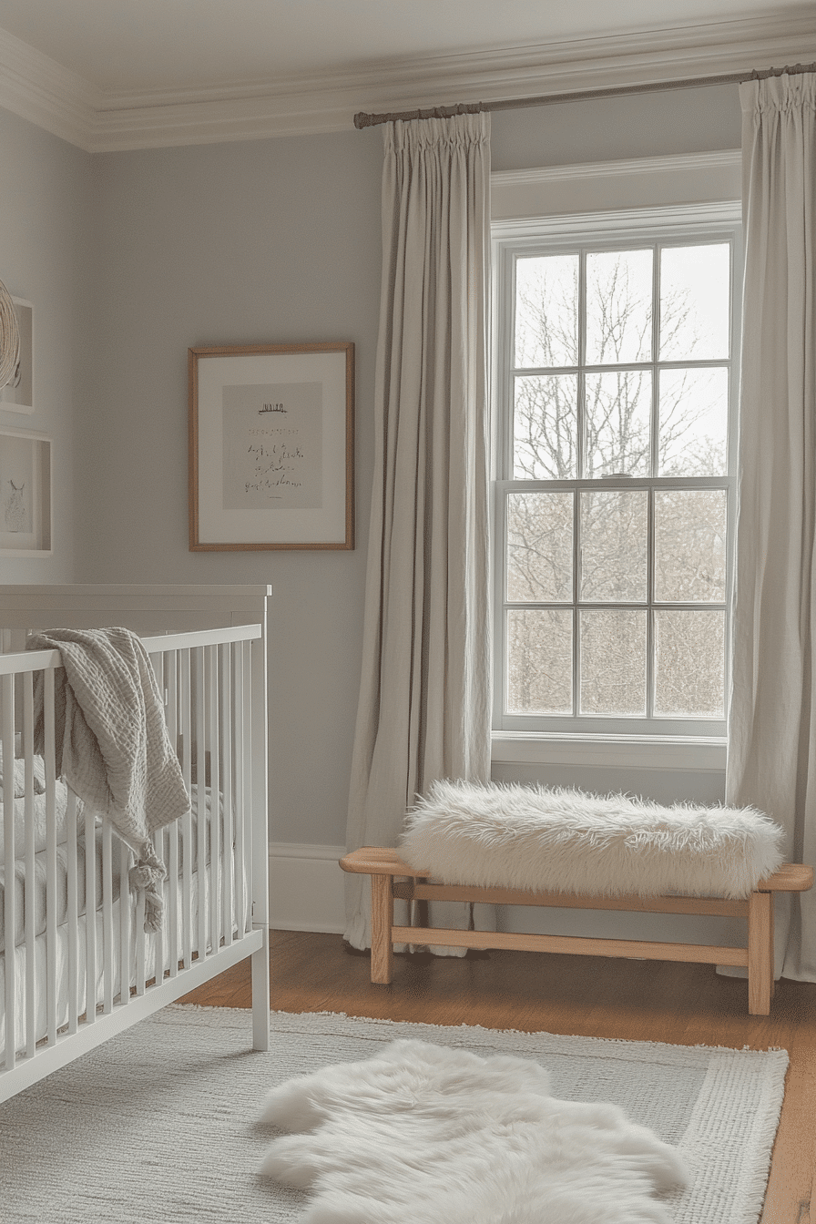 Feather-light gray tones offer breezy calm in a neutral baby nursery while remaining grounded and versatile. The palette creates a gentle base for evolving decor. It pairs beautifully with whites and warm taupes. The space feels peaceful and adaptable. Ideal for every stage of growth.