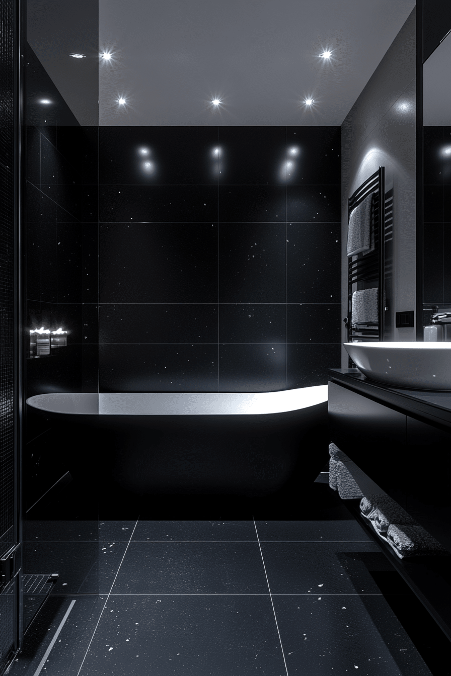 4. Polished Black and White Bath