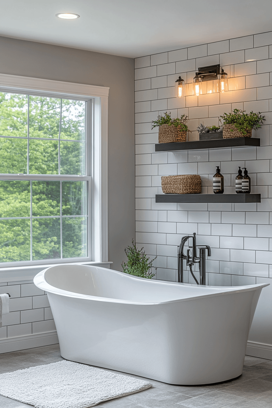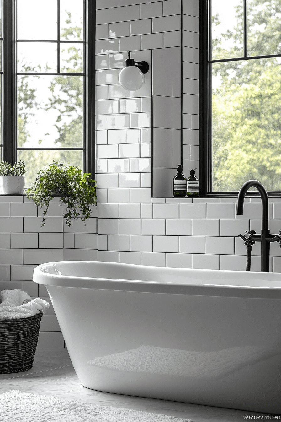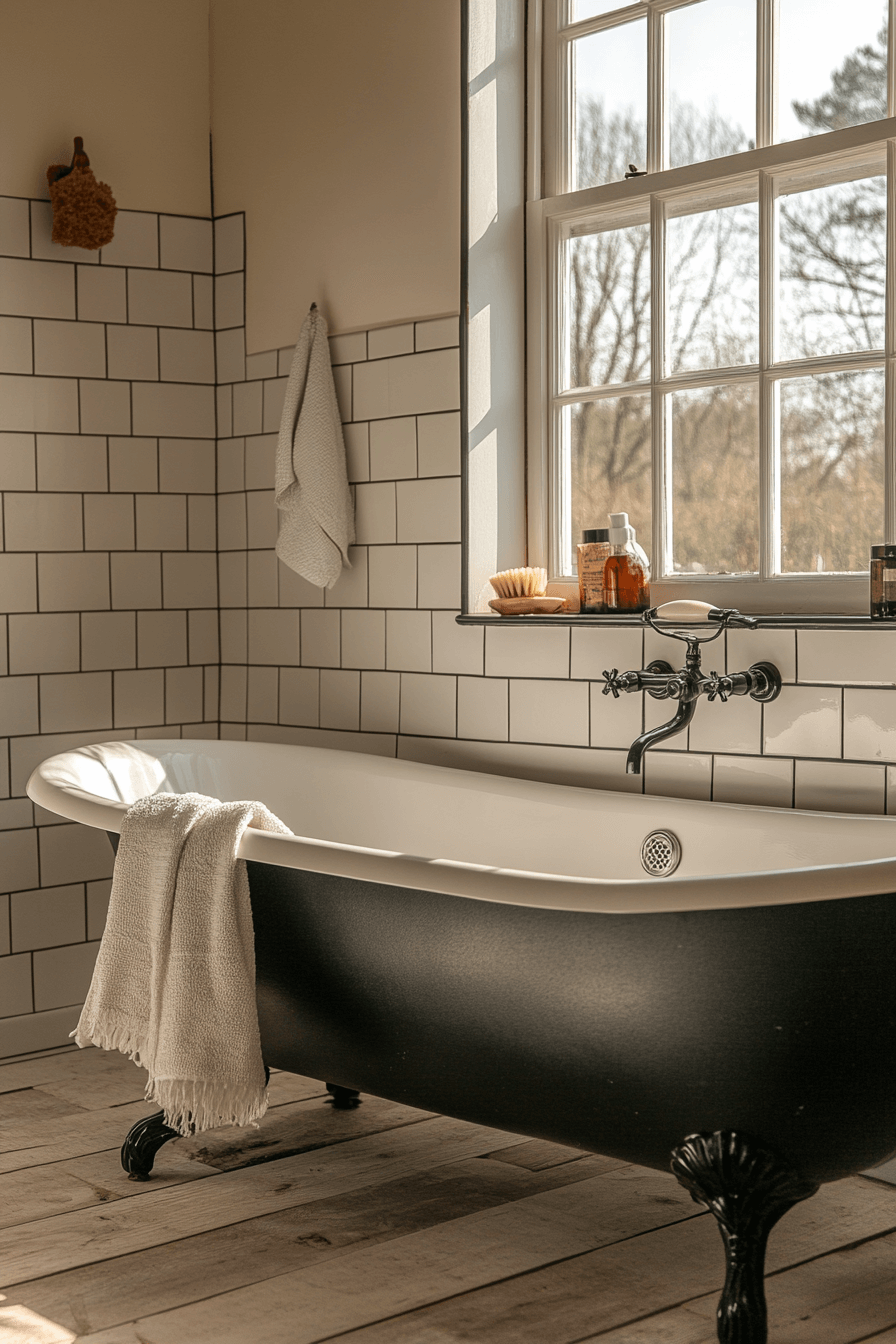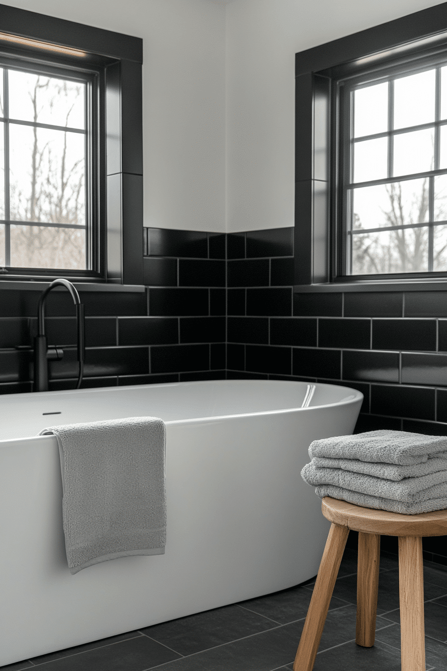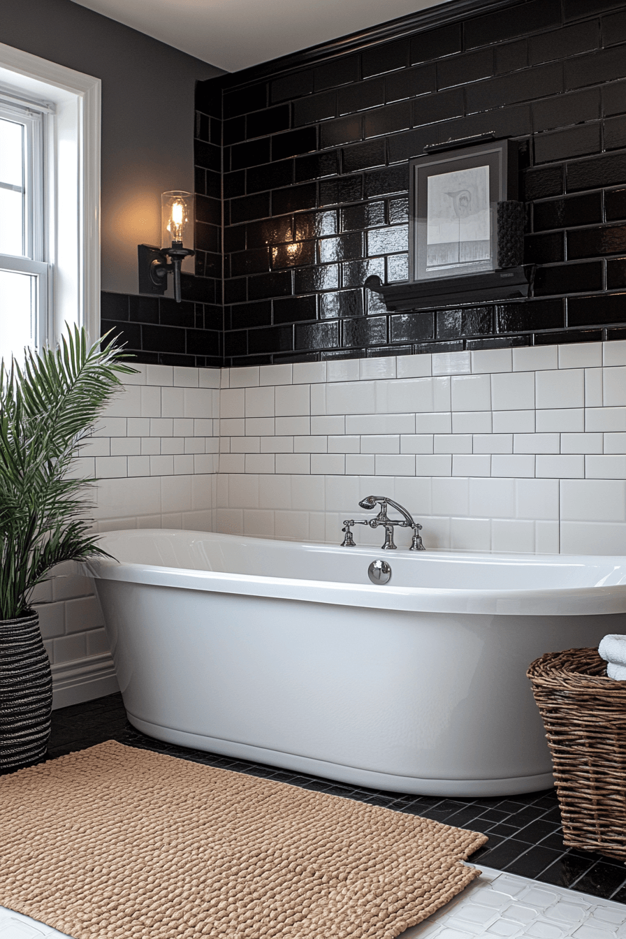 28. High-Contrast Soaking Bathroom