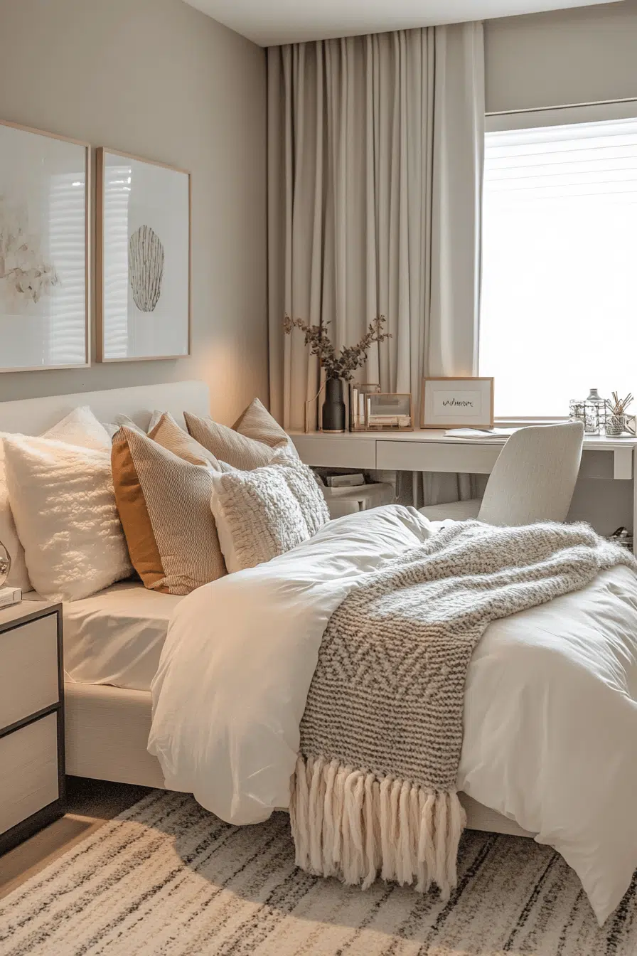1. Serene Neutral Dorm Space