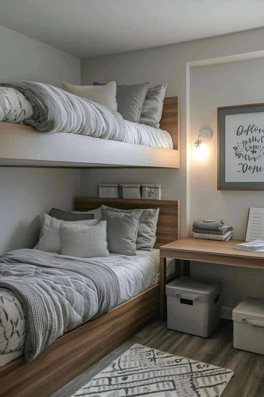 Elevated bed designs maximize space in shared dorm rooms efficiently. Extra room underneath allows for desks or storage. These college dorm room ideas are both practical and stylish. Coordinated bedding keeps everything cohesive. It’s a smart solution for tight layouts. Maximize your layout with more bunk-style college dorm room ideas.