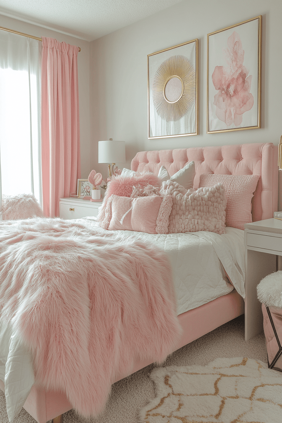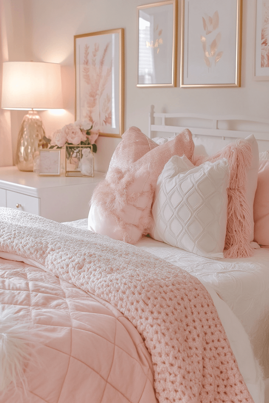 18. Blush Metallic Dorm Design