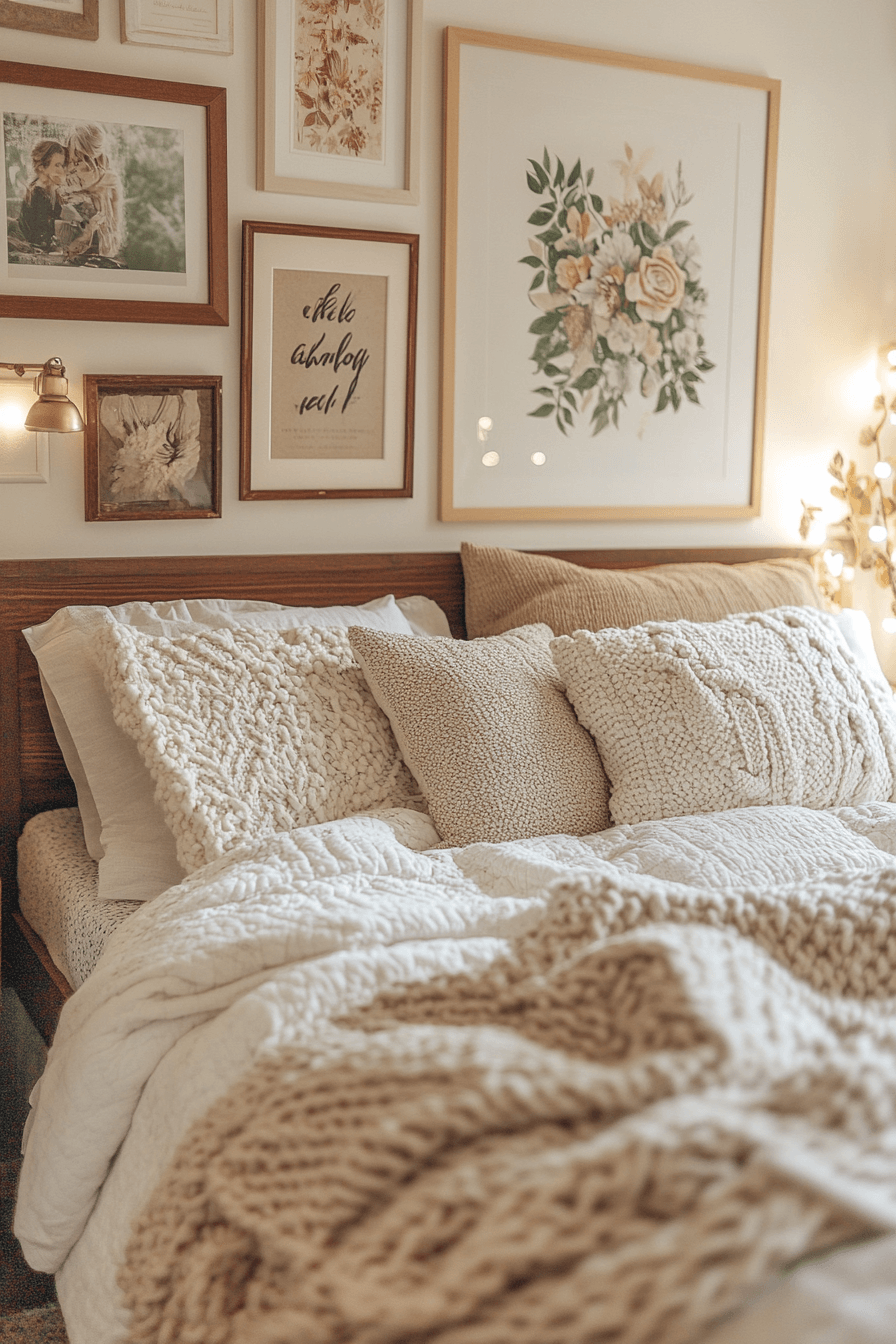 Gallery-style walls bring personality and creativity into dorm spaces. Mixing photos and prints creates a curated look. These college dorm room ideas make walls stand out beautifully. Neutral frames keep everything cohesive. The result feels personal and stylish. Express yourself with more gallery-inspired college dorm room ideas.