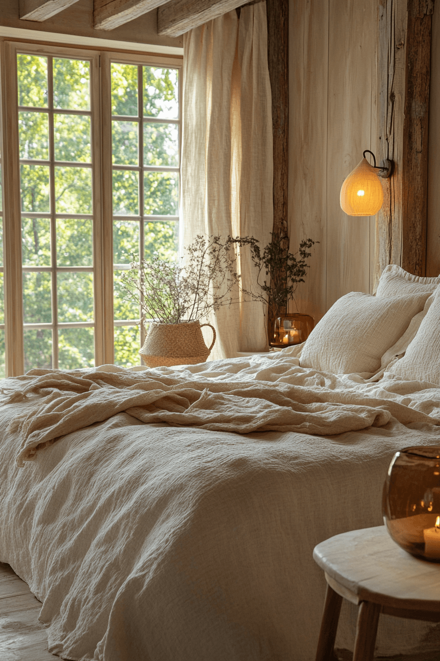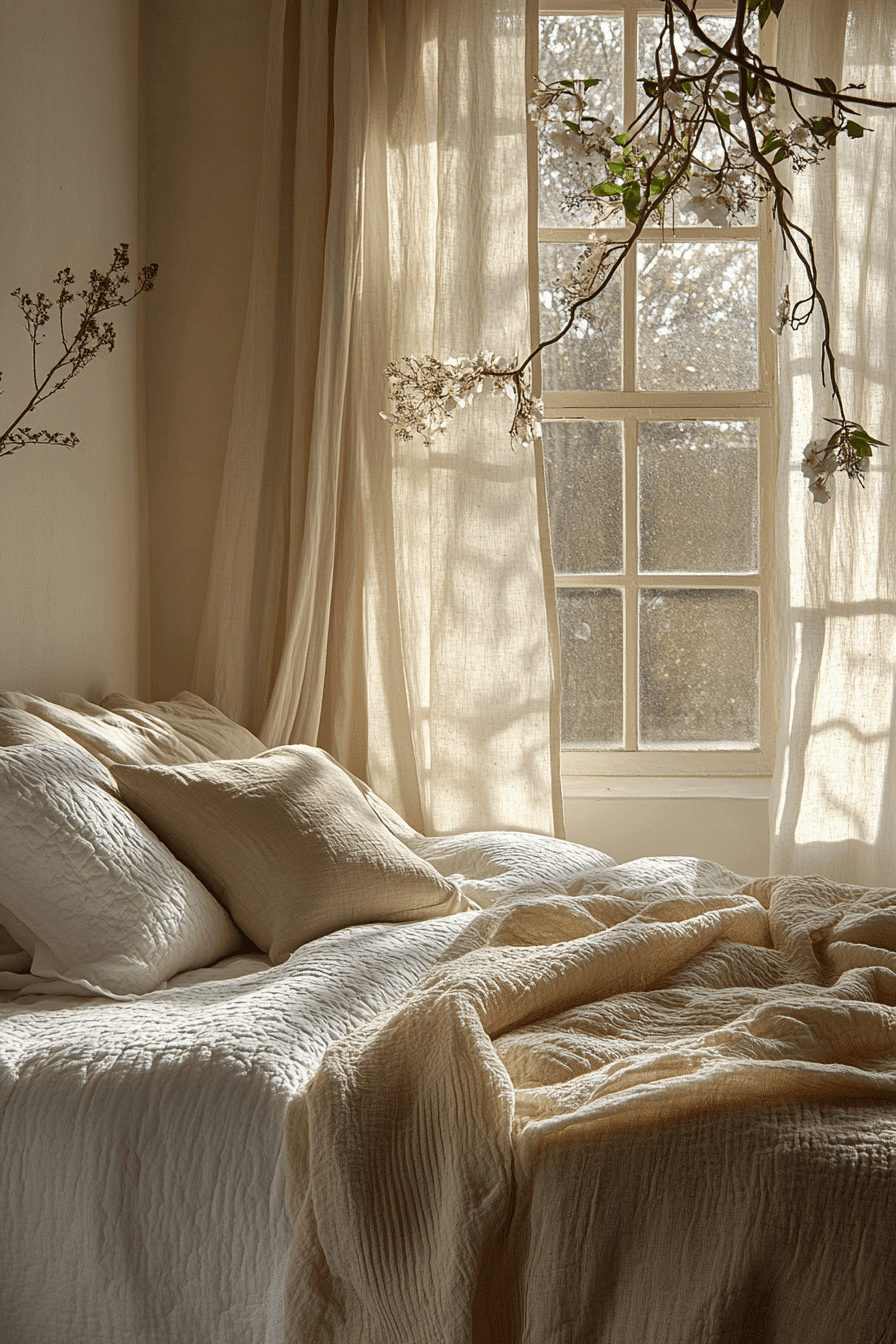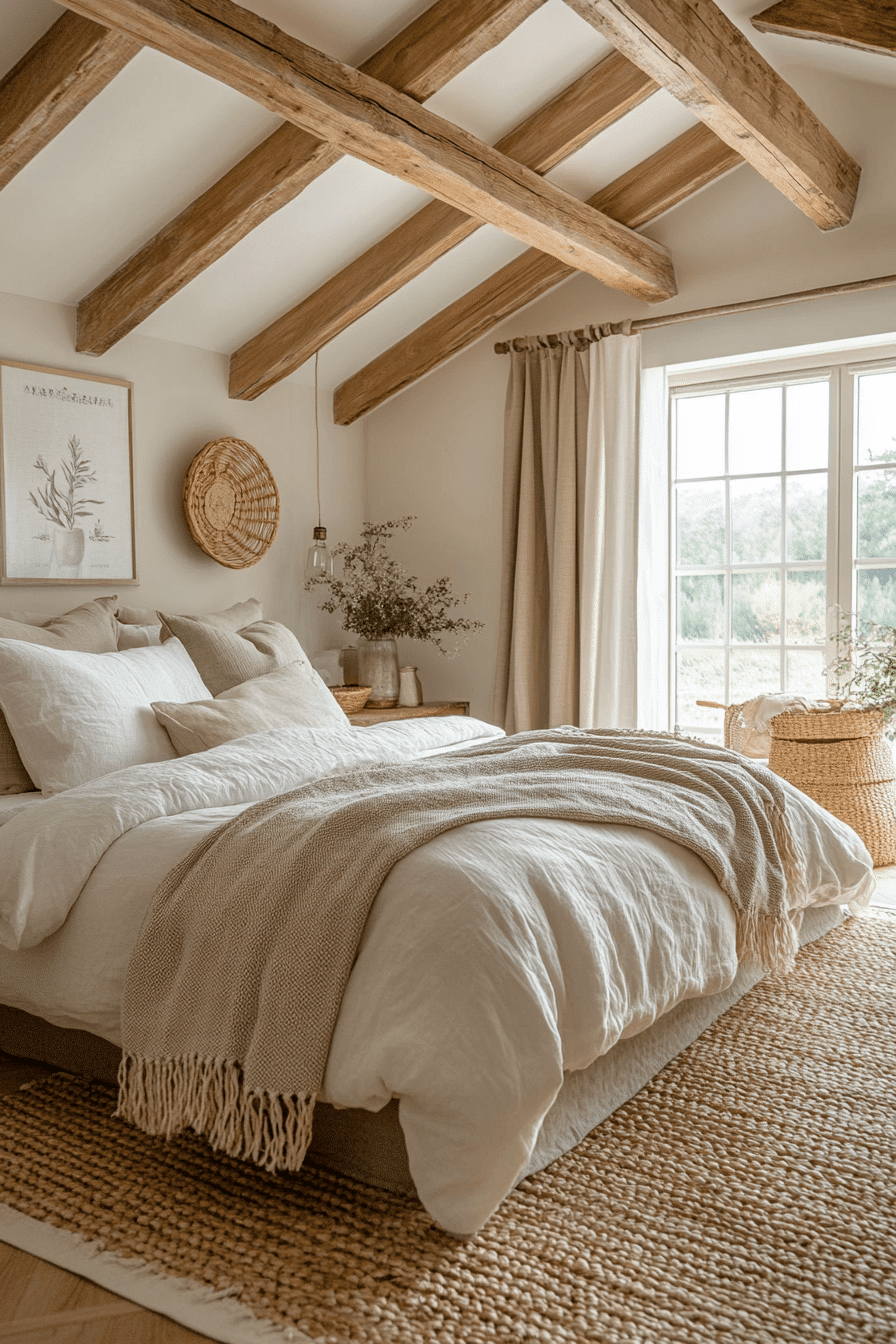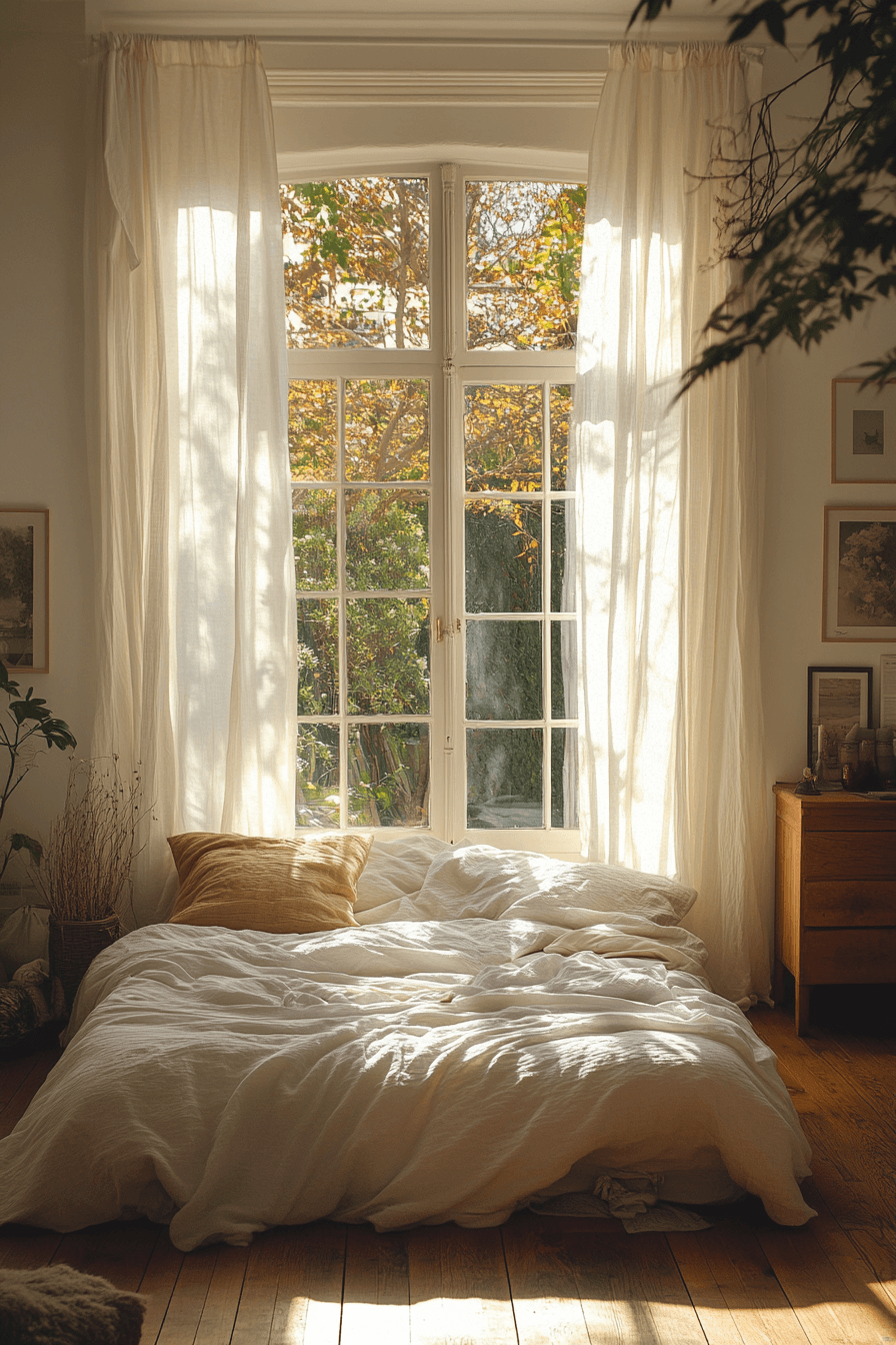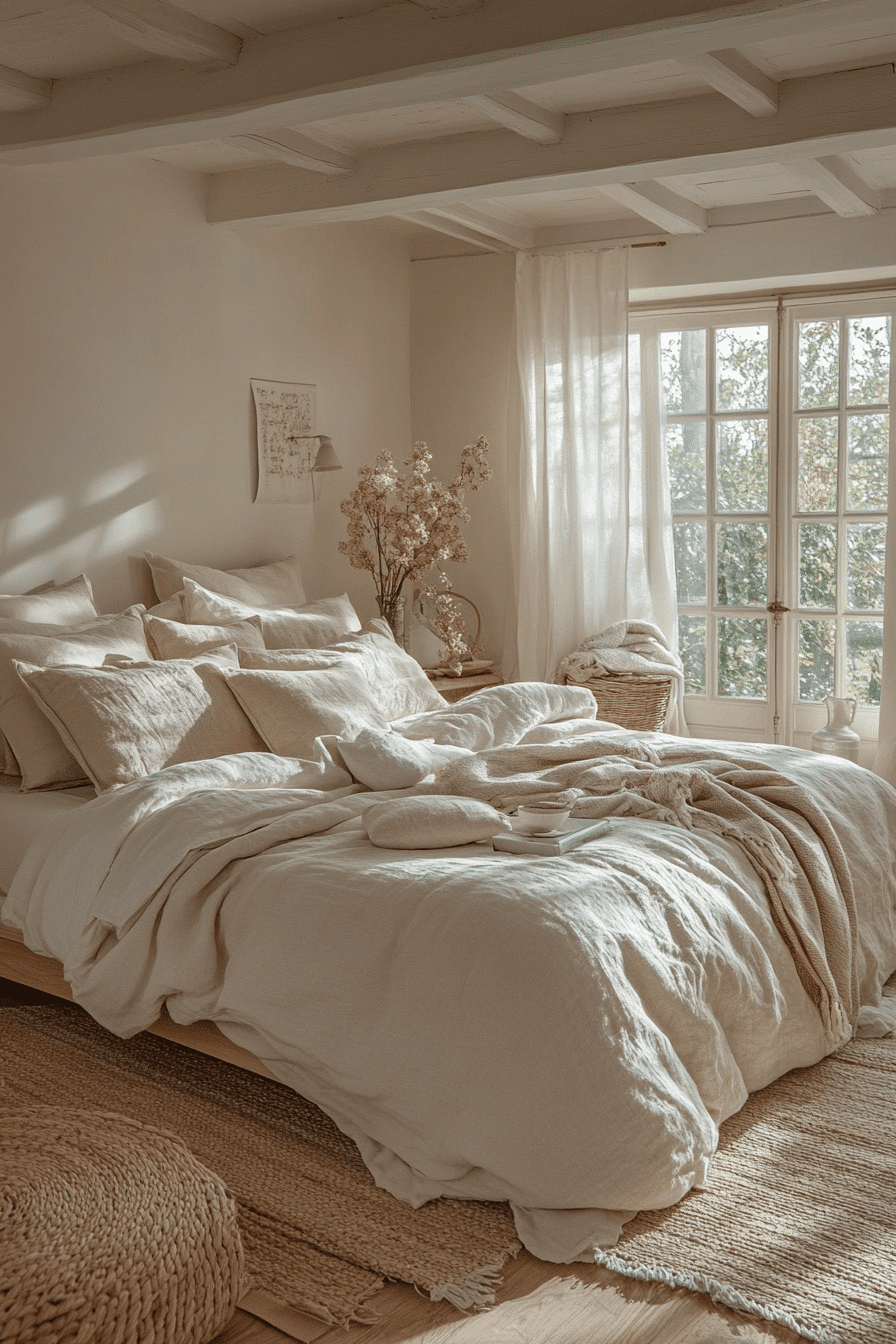 Light layers of white, sand, and taupe create a bright and breathable atmosphere. This cottagecore bedroom reflects natural light beautifully. Soft fabrics add depth and comfort. The space feels open and relaxing. Every detail enhances calm living. Tap to explore more light-filled cottagecore bedroom styles.
