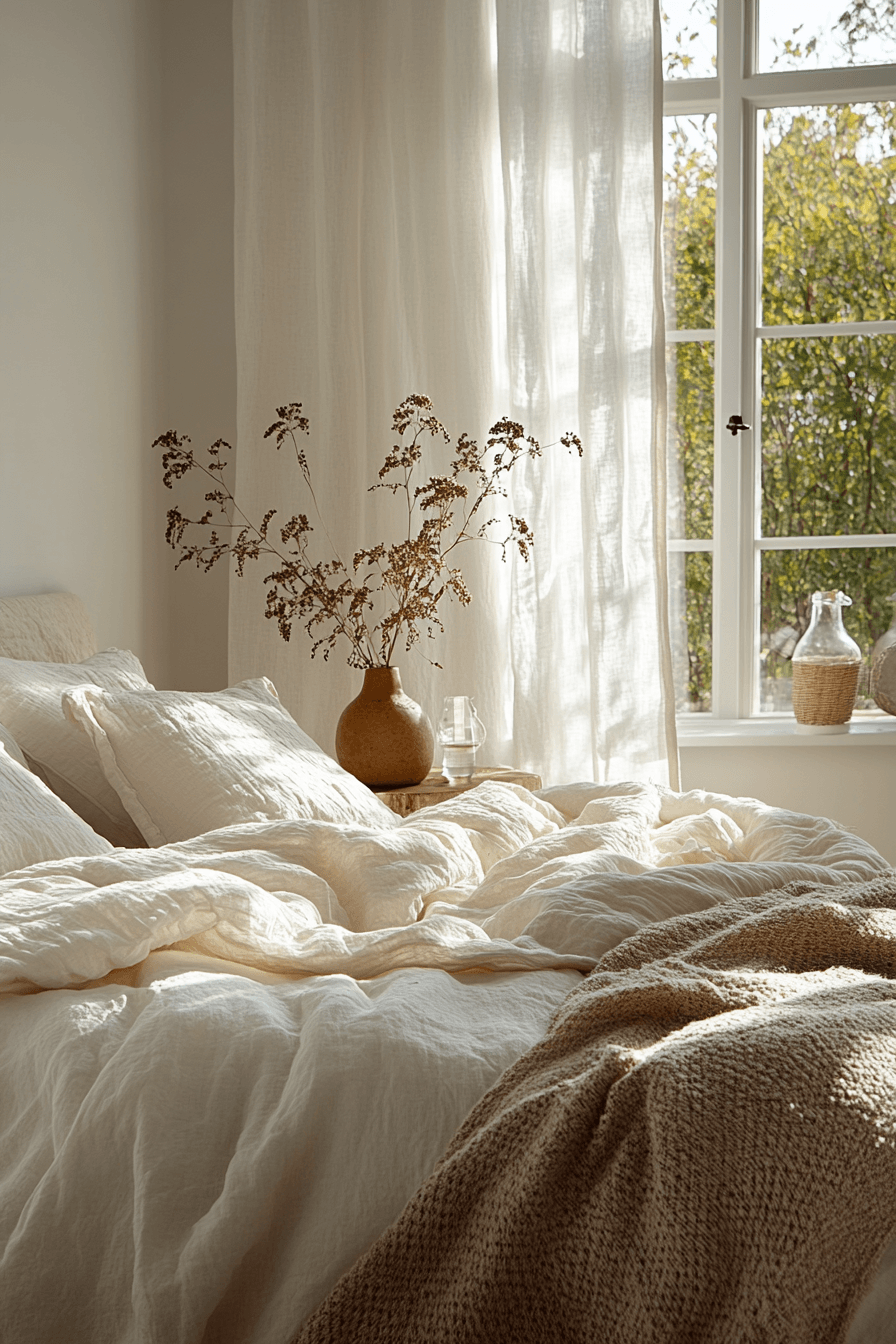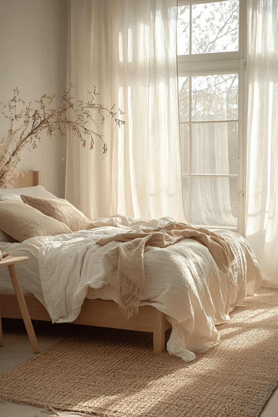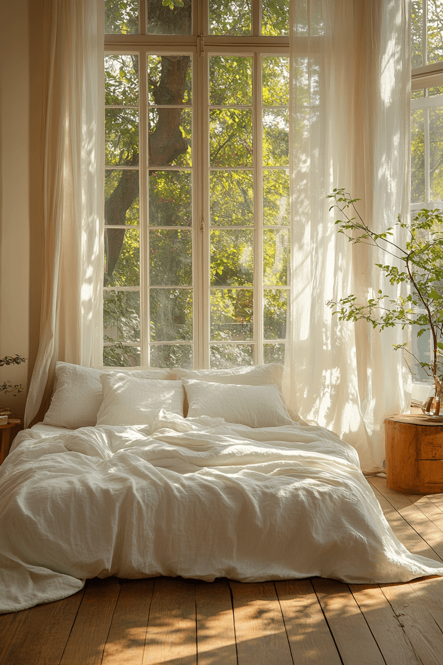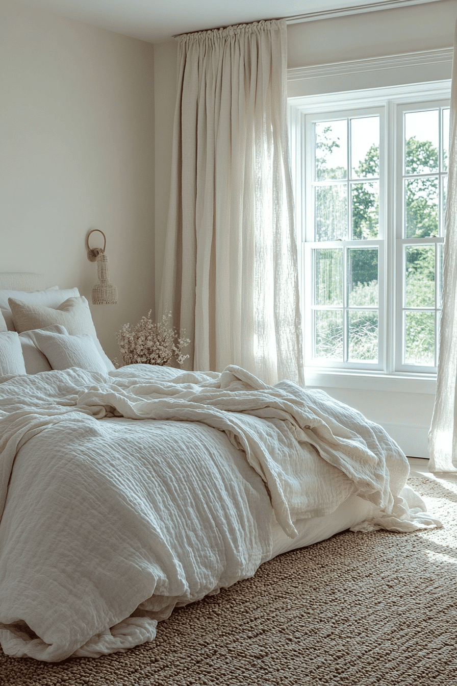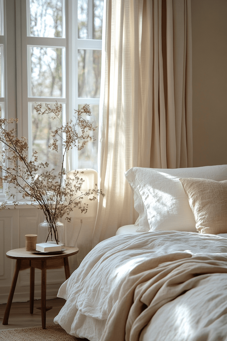 Light layers of white, sand, and taupe create a bright and breathable atmosphere. This cottagecore bedroom reflects natural light beautifully. Soft fabrics add depth and comfort. The space feels open and relaxing. Every detail enhances calm living. Tap to explore more light-filled cottagecore bedroom styles.