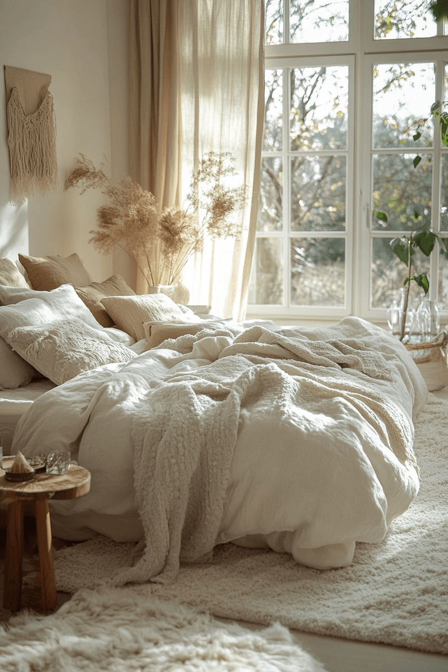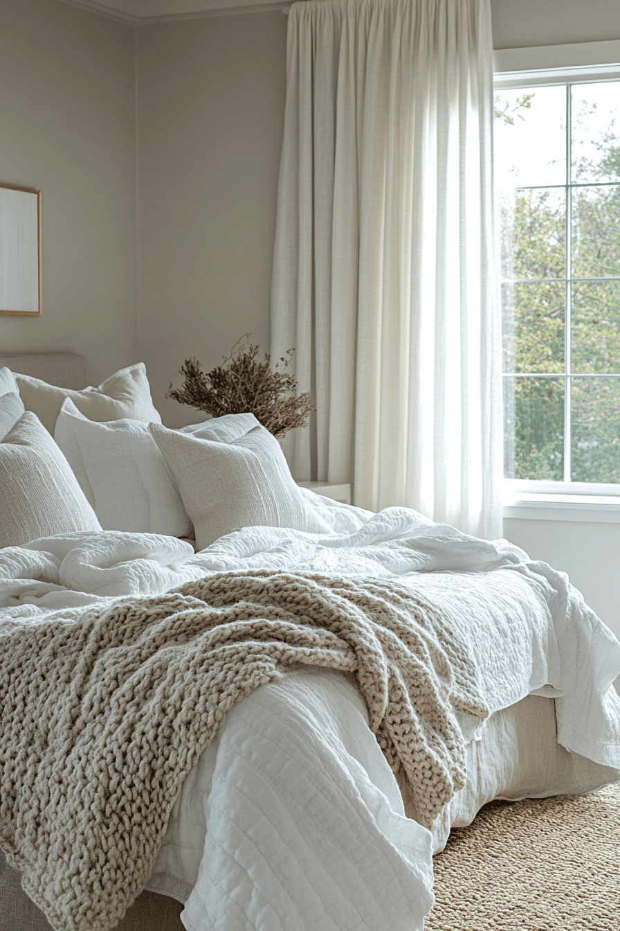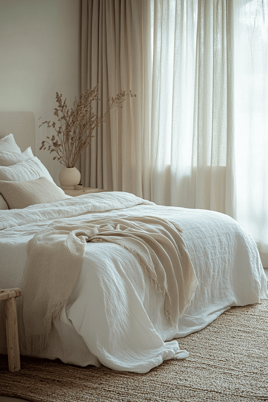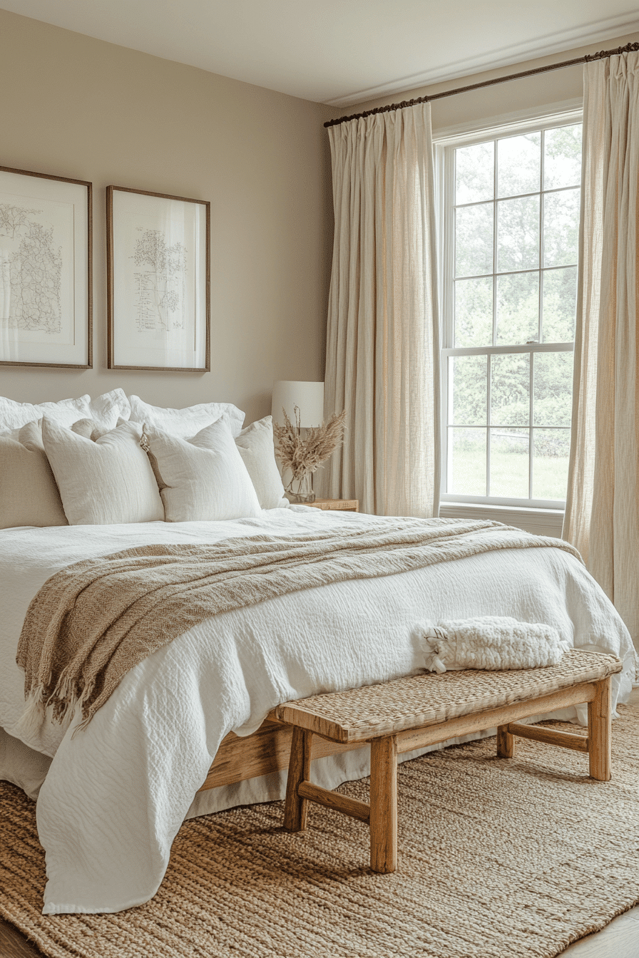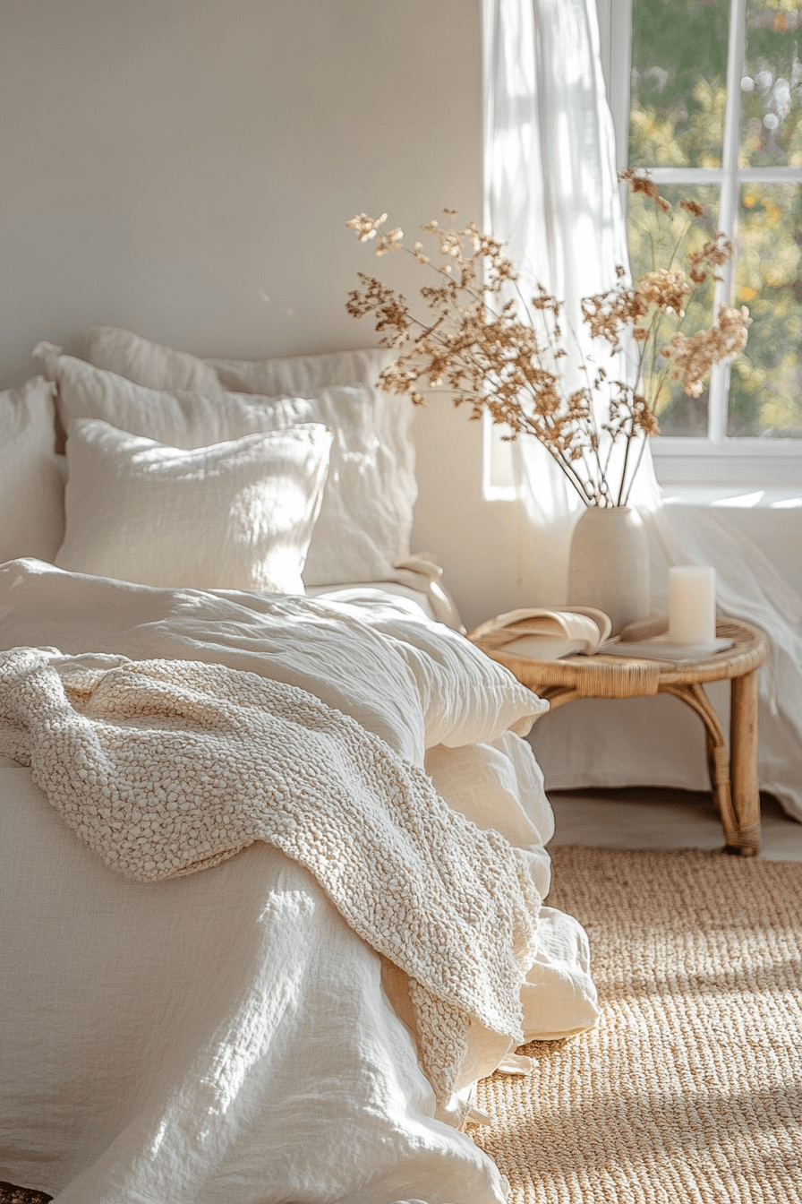 Light layers of white, sand, and taupe create a bright and breathable atmosphere. This cottagecore bedroom reflects natural light beautifully. Soft fabrics add depth and comfort. The space feels open and relaxing. Every detail enhances calm living. Tap to explore more light-filled cottagecore bedroom styles.