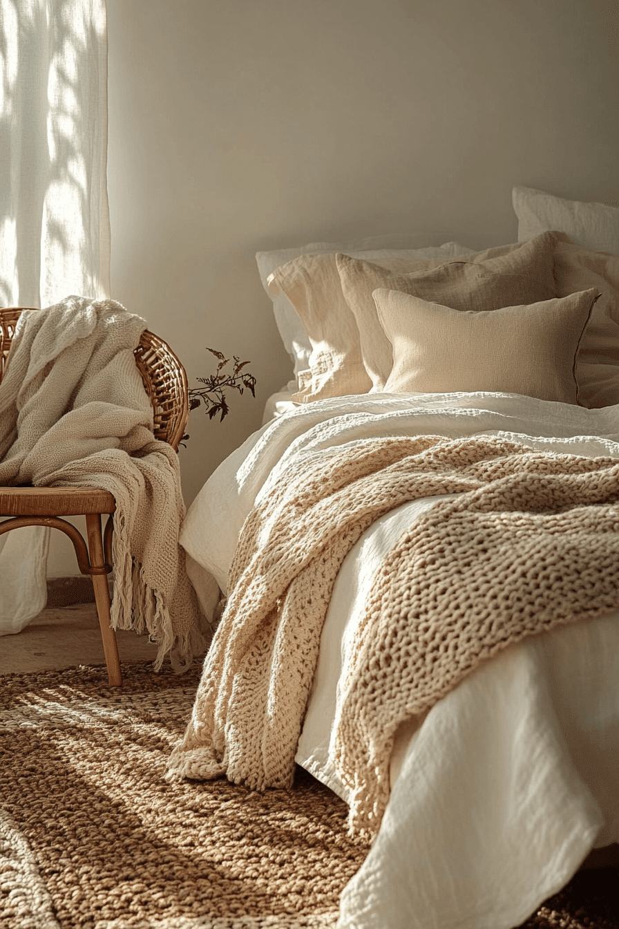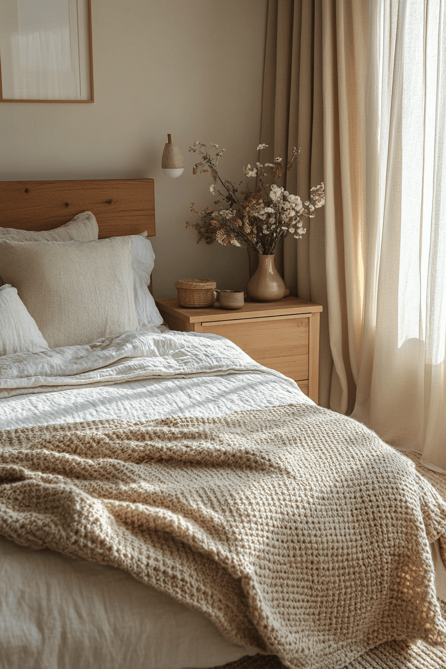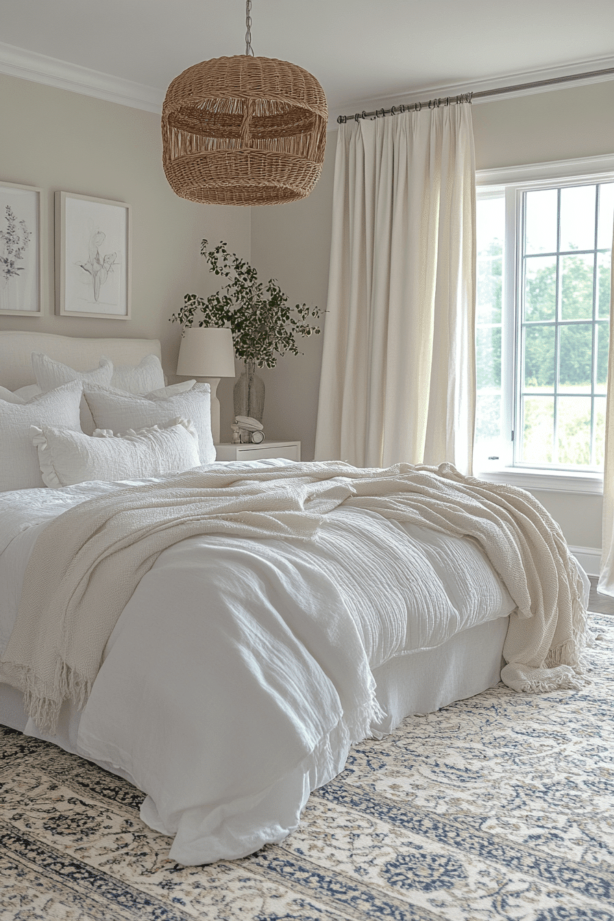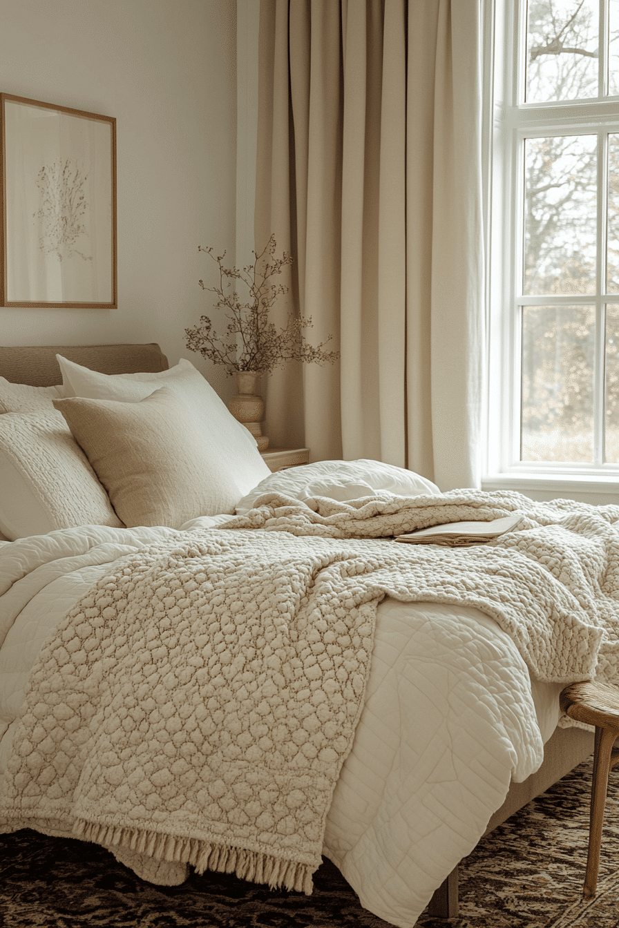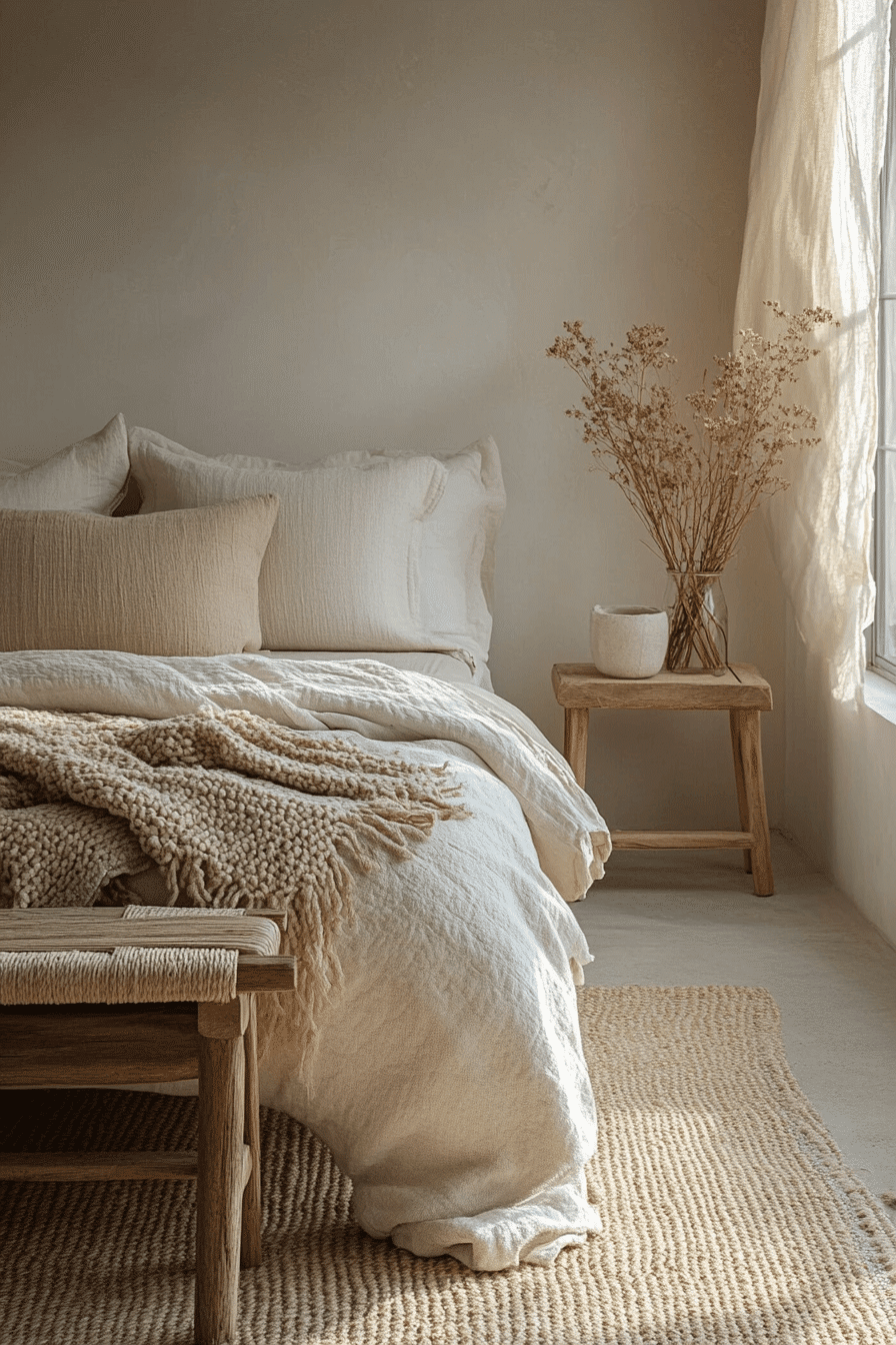 Light layers of white, sand, and taupe create a bright and breathable atmosphere. This cottagecore bedroom reflects natural light beautifully. Soft fabrics add depth and comfort. The space feels open and relaxing. Every detail enhances calm living. Tap to explore more light-filled cottagecore bedroom styles.