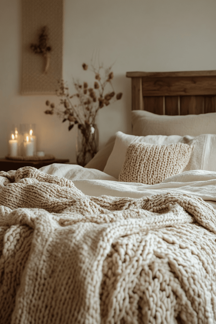 Warm tones and cozy layers transform the space into a comforting hideaway inspired by fireside living. This cottagecore bedroom uses earthy hues to create depth and warmth. Chunky knits and textured accents add softness throughout. Gentle lighting enhances the inviting mood. The design feels rustic yet timeless. Click to discover more hearth-inspired cottagecore bedroom ideas.