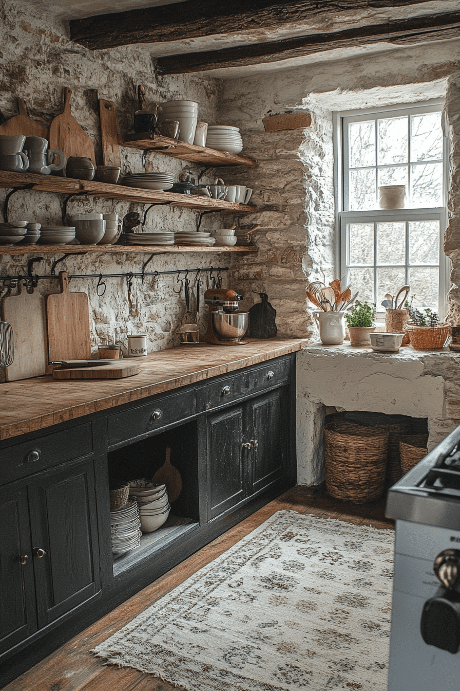 Soft shadows create subtle movement and depth across the space. This cottagecore kitchen uses natural light to highlight textures and tones. Wooden elements add warmth and balance. The design feels dynamic yet calm. Every detail supports quiet elegance. Click to explore more shadow-inspired cottagecore kitchen ideas.