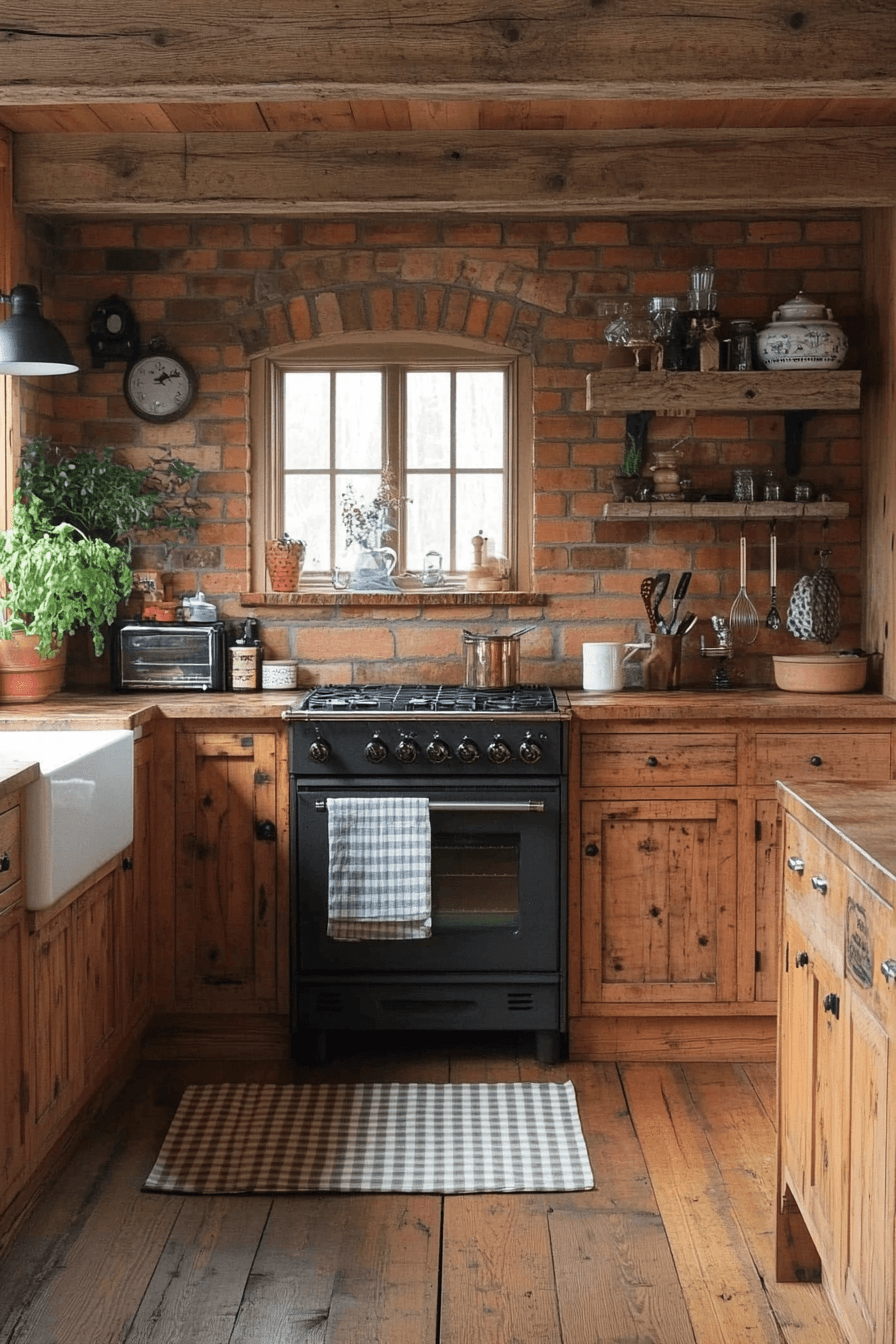 Warm browns and muted reds bring a rich, hearth-inspired depth that feels welcoming and nostalgic. This cottagecore kitchen blends rustic cabinetry with soft textiles for a balanced look. The space encourages gathering, whether baking or sharing quiet moments. Vintage dishware adds to the timeless charm. Every detail supports connection and comfort. Tap to explore more hearth-inspired cottagecore kitchen ideas.