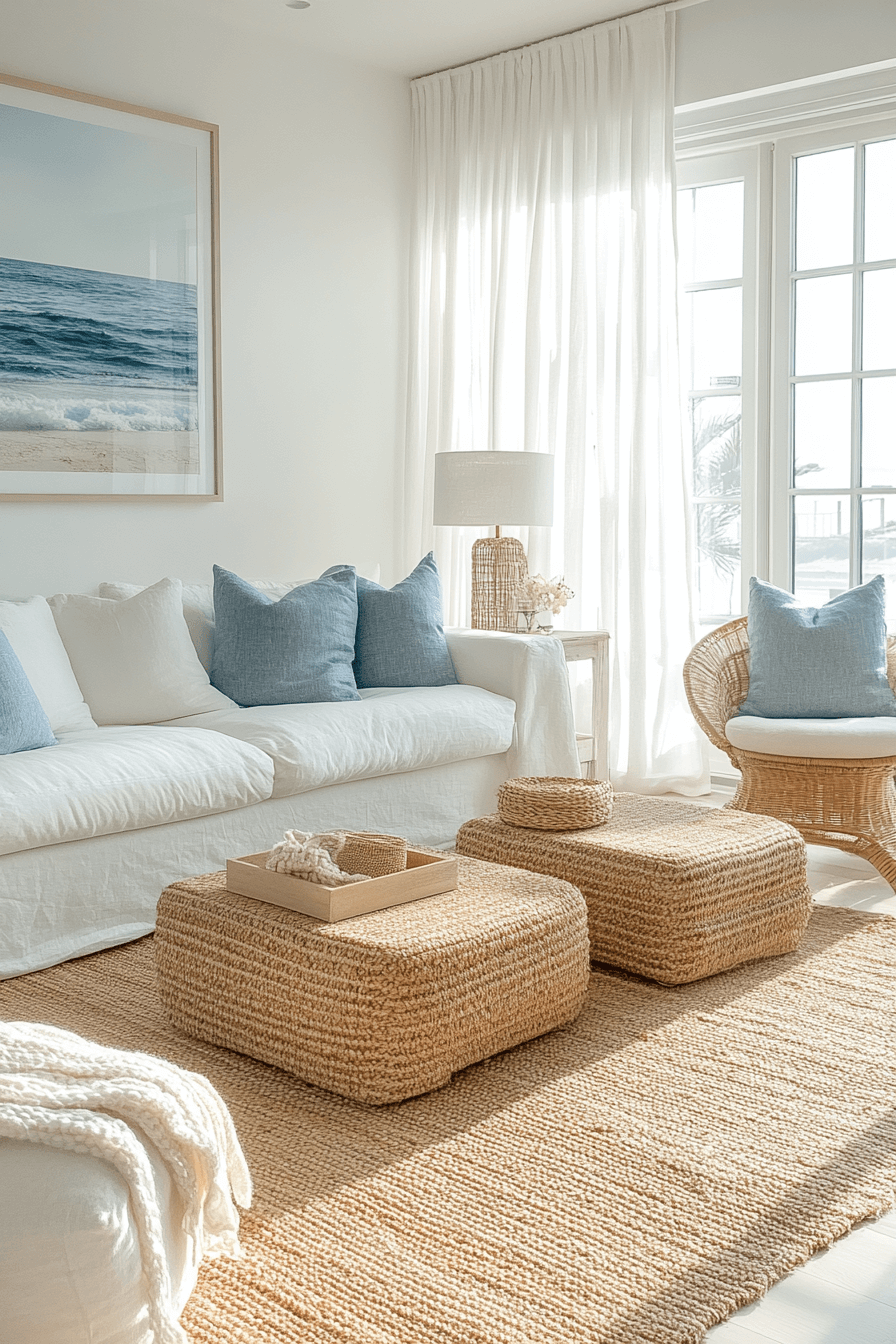 Breezy tones and natural textures bring a relaxed coastal feel to dream apartment decor, creating the sense of an airy retreat. Soft blues, sandy neutrals, and whitewashed finishes keep the space feeling open and refreshing. Light linens and woven accents enhance the calm atmosphere without overwhelming the room. Sunlight becomes a key design element, bouncing off bright surfaces and expanding the space visually. This style is perfect for anyone longing for a soothing escape at home.