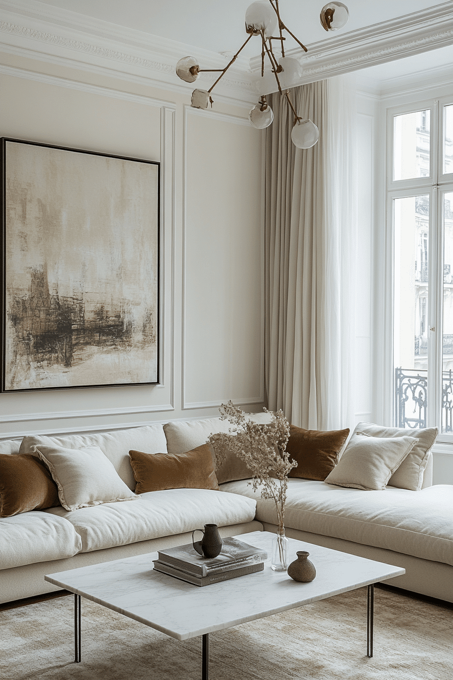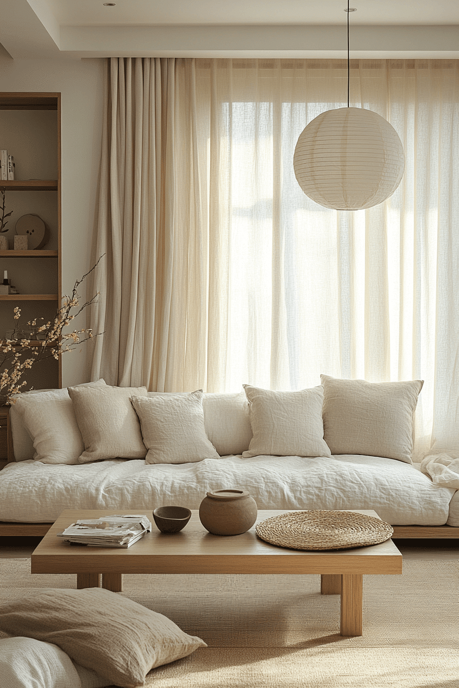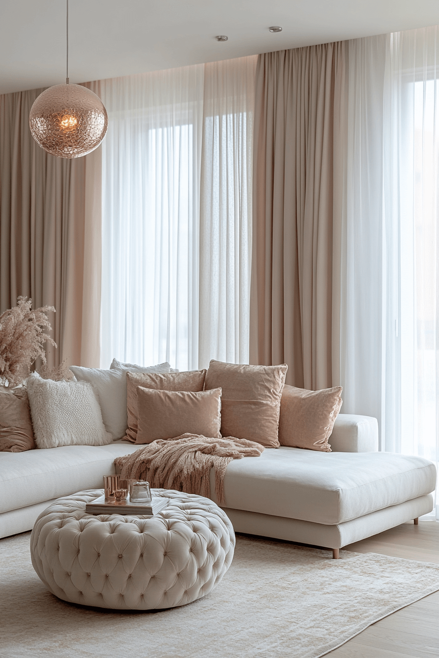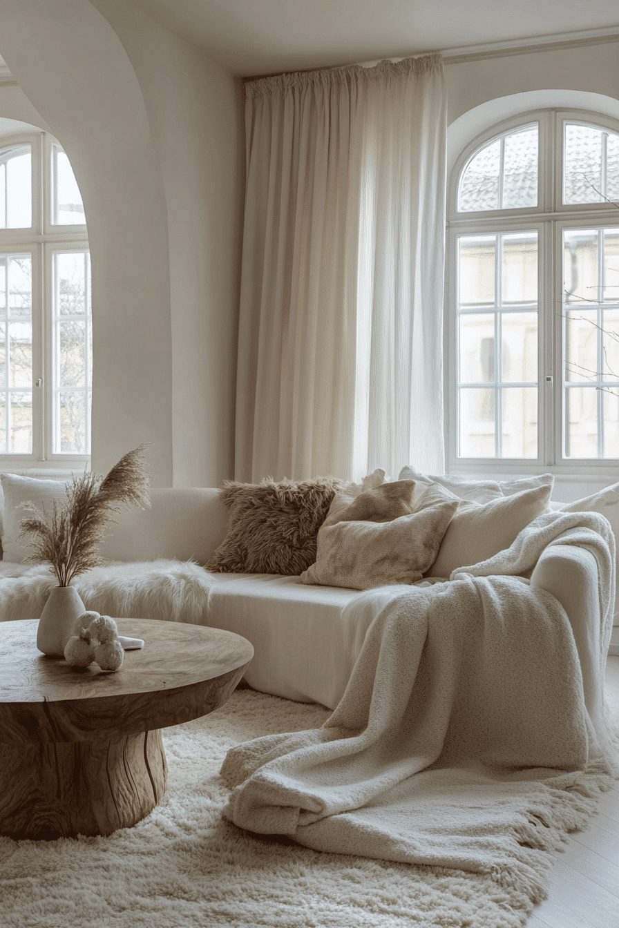 Soft neutrals and rounded shapes bring a floating, airy feel to dream apartment decor inspired by cloud-like comfort. Creamy layers brighten the room while adding gentle softness. Billowy curtains and plush seating enhance the calm ambiance. This style suits smaller apartments needing light and lift. Dream apartment decor rooted in soft, airy textures feels serene and weightless.