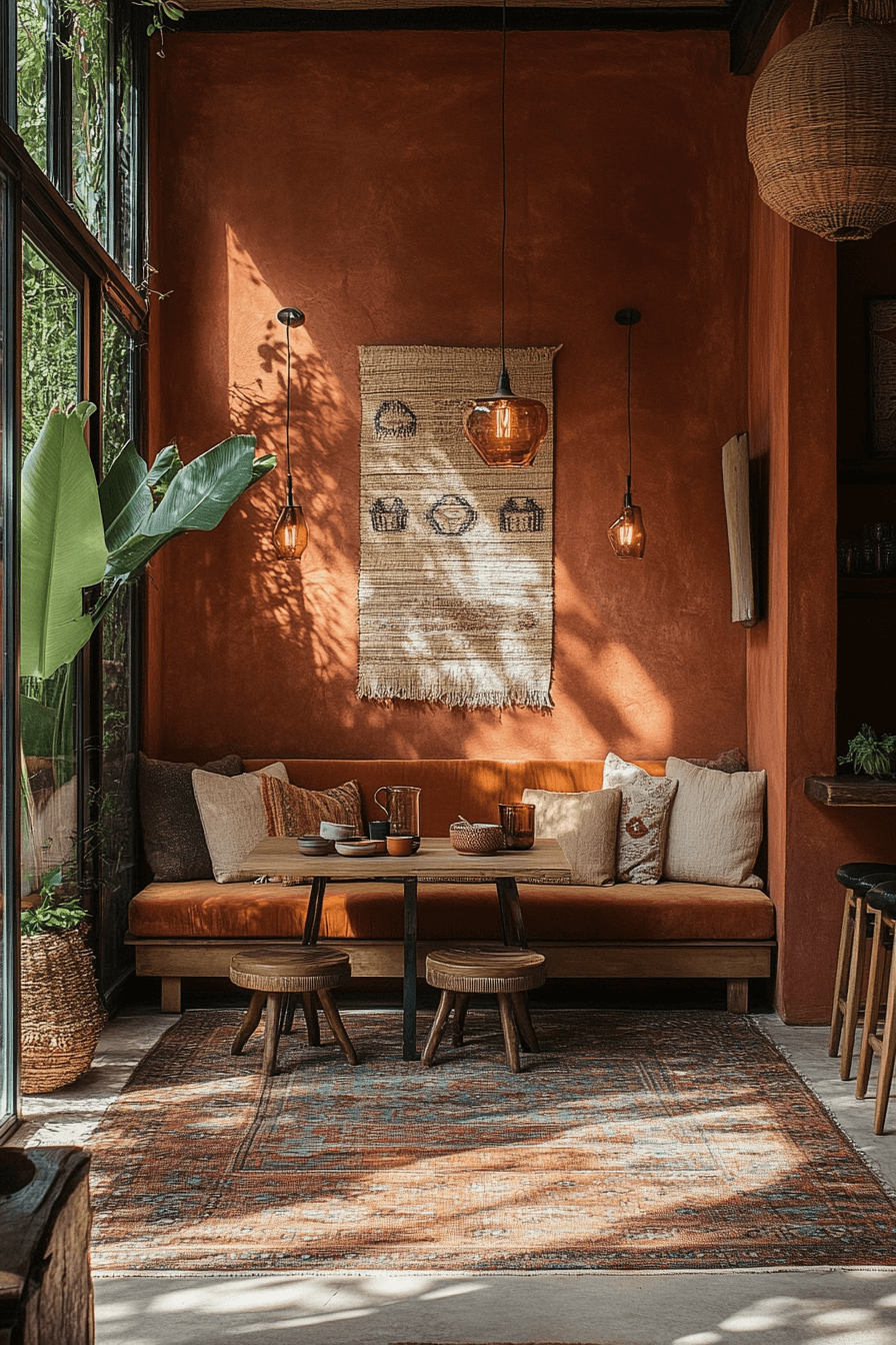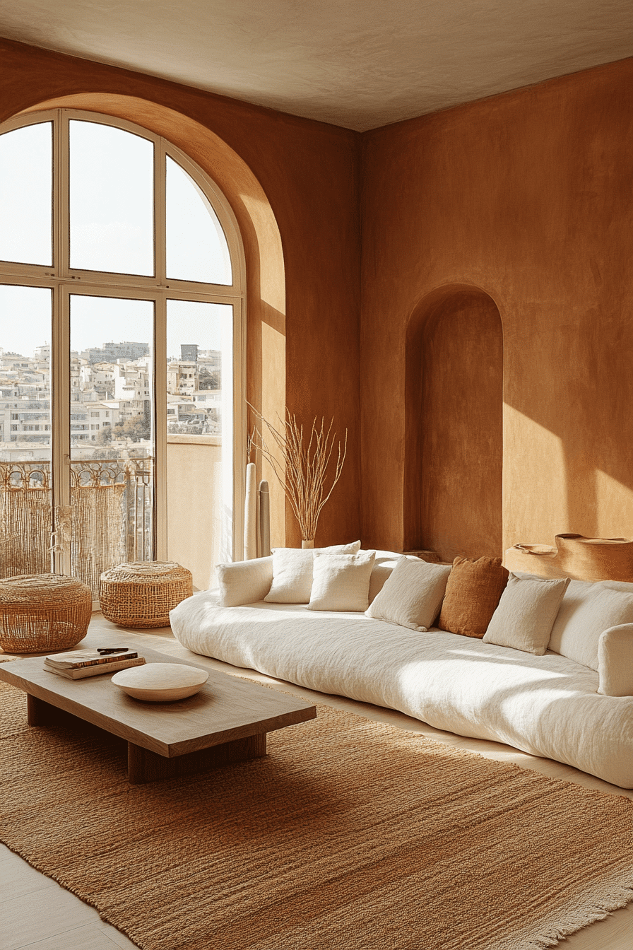 Sun-washed hues and earthy palettes infuse dream apartment decor with desert calm and grounded warmth. Terracotta tones, clay textures, and woven accessories create a natural, sunlit vibe. The look feels open and organic, especially in bright spaces. Minimal furnishings help highlight the beauty of the materials themselves. This aesthetic brings a soft sense of warmth year-round.