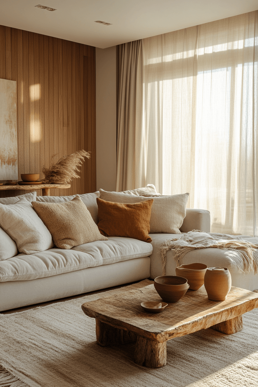 Organic textures and meaningful imperfections enrich dream apartment decor inspired by Wabi Sabi philosophy. Natural wood, handmade ceramics, and raw fabrics introduce soul and authenticity. Soft, earthy hues encourage a slower, more mindful way of living. The environment feels warm, intentional, and deeply personal. This style celebrates beauty in simplicity and lived-in comfort.