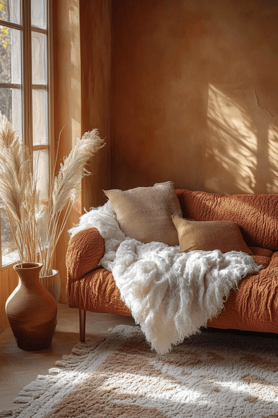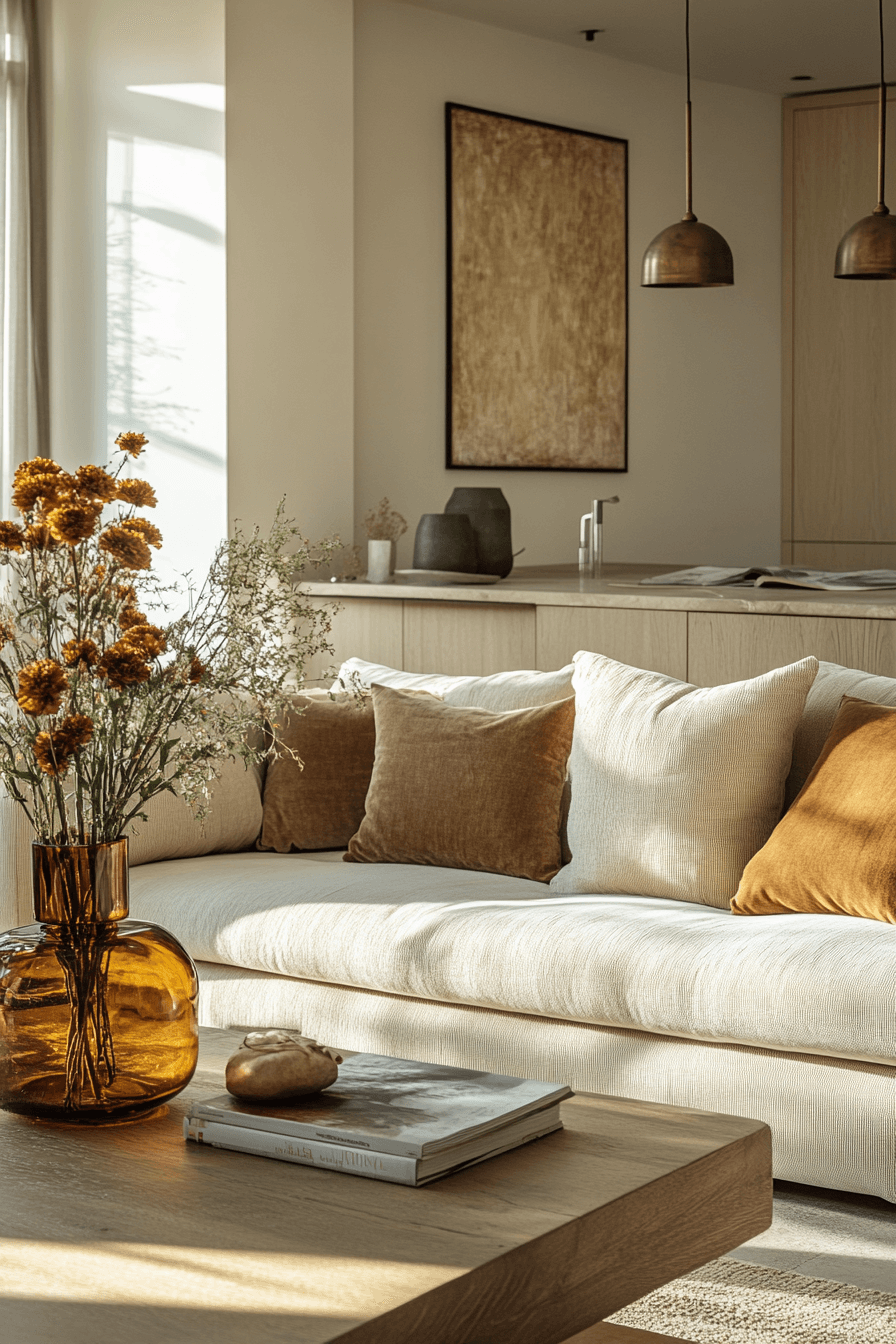 Golden, sunset-inspired tones fill dream apartment decor with rich warmth and a romantic glow. Burnt oranges, warm pinks, and rust accents create a cozy, enveloping mood. Layered textiles enhance depth and comfort. This palette thrives in open layouts or rooms with natural light. Dream apartment decor with sunset warmth feels inviting from morning to night.