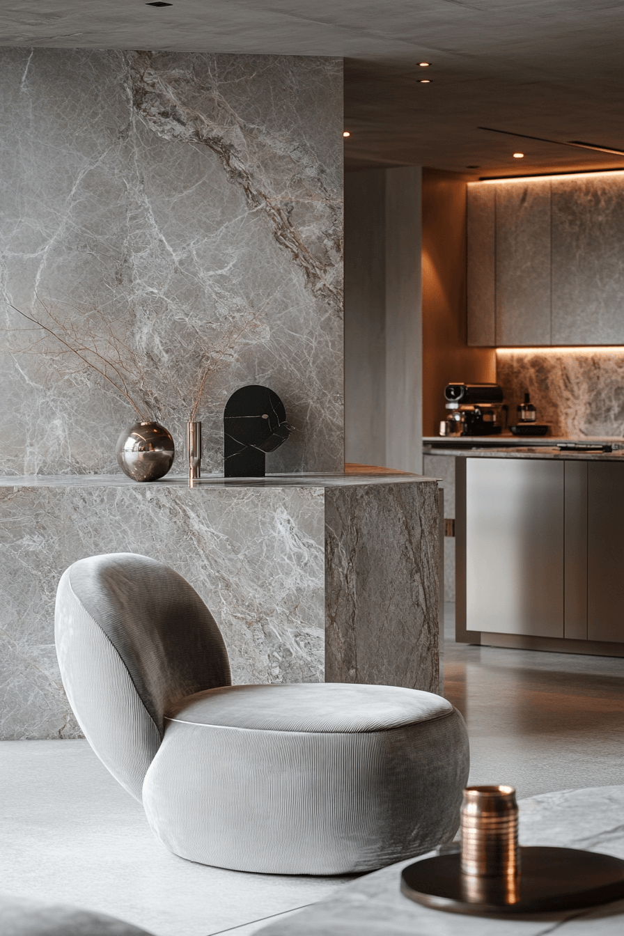 Smooth stone hues paired with soft textures give dream apartment decor a serene, modern finish. Marble accents, suede fabrics, and pale greys introduce quiet sophistication. This palette thrives in bright spaces where natural light enhances dimension. The look is calming, minimalist, and refined. Dream apartment decor in stone-inspired tones feels effortlessly elevated.