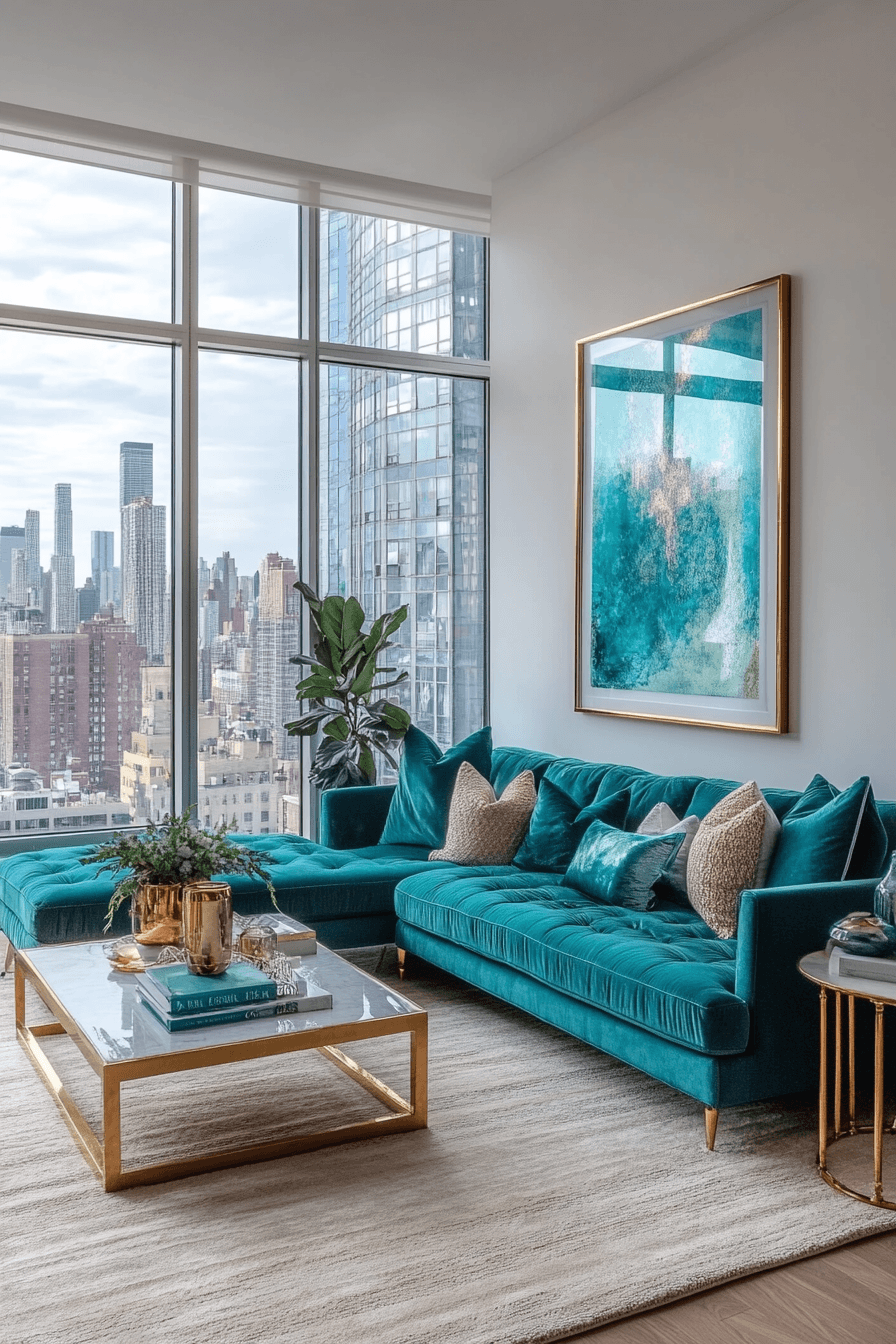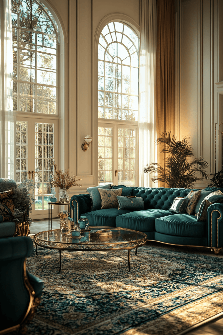 Teal tones blend blue and green beautifully in layered jewel tone decor palettes. The shade introduces freshness without overpowering the room. Teal works beautifully in rugs, pillows, or painted cabinetry. It pairs well with both warm and cool jewel colors. The overall design feels vibrant and balanced. Tap to see teal radiance jewel tone decor ideas.