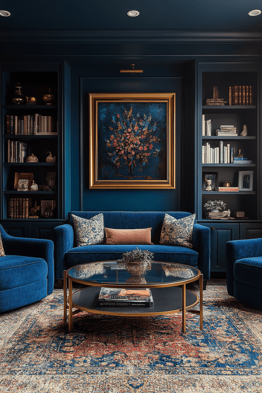 Cobalt shades deliver bold modern energy to vibrant jewel tone decor. The vivid blue color creates a dramatic focal point in furniture or artwork. Cobalt pairs beautifully with ruby, emerald, or gold accents. The palette feels energetic yet refined. The room becomes visually striking. Click to explore cobalt charm jewel tone decor inspiration.