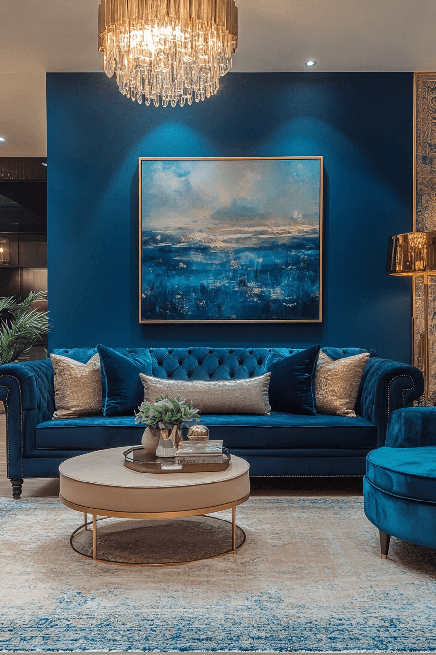 Sapphire shades anchor bold jewel tone decor palettes with rich blue elegance. The color works beautifully in furniture upholstery, rugs, or statement walls. Metallic finishes highlight its depth. Sapphire introduces timeless sophistication into interiors. The room instantly feels polished and refined. Click to explore sapphire allure jewel tone decor ideas.