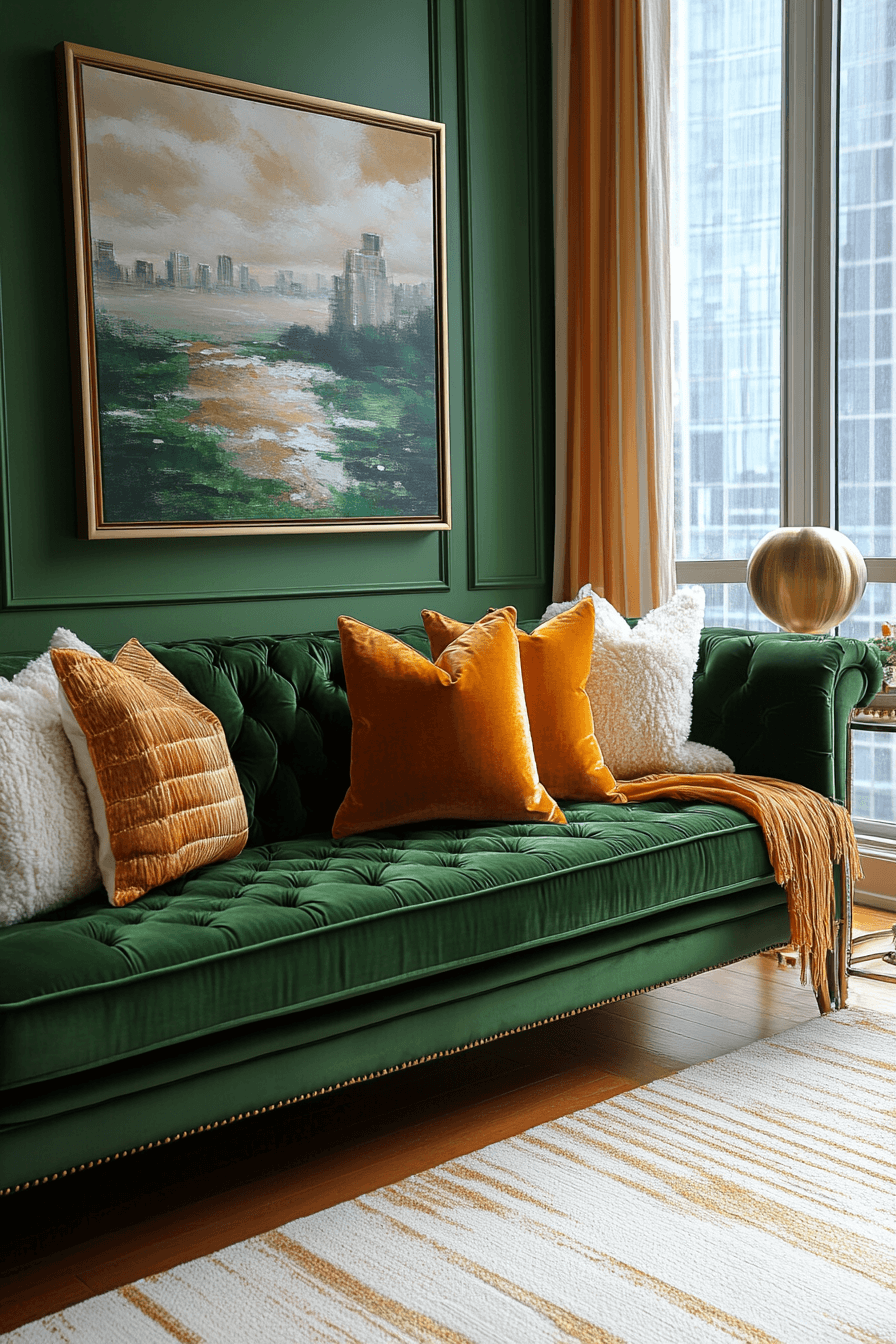 Emerald shades bring fresh vibrancy and refined beauty to layered jewel tone decor palettes. The deep green tone works beautifully in upholstered furniture, wall panels, or decorative accessories. Emerald pairs effortlessly with neutral shades like cream or taupe for balance. It also complements other jewel colors such as sapphire or ruby for a richer palette. The overall effect feels grounded, elegant, and full of life. Click to explore emerald-inspired jewel tone decor inspiration.
