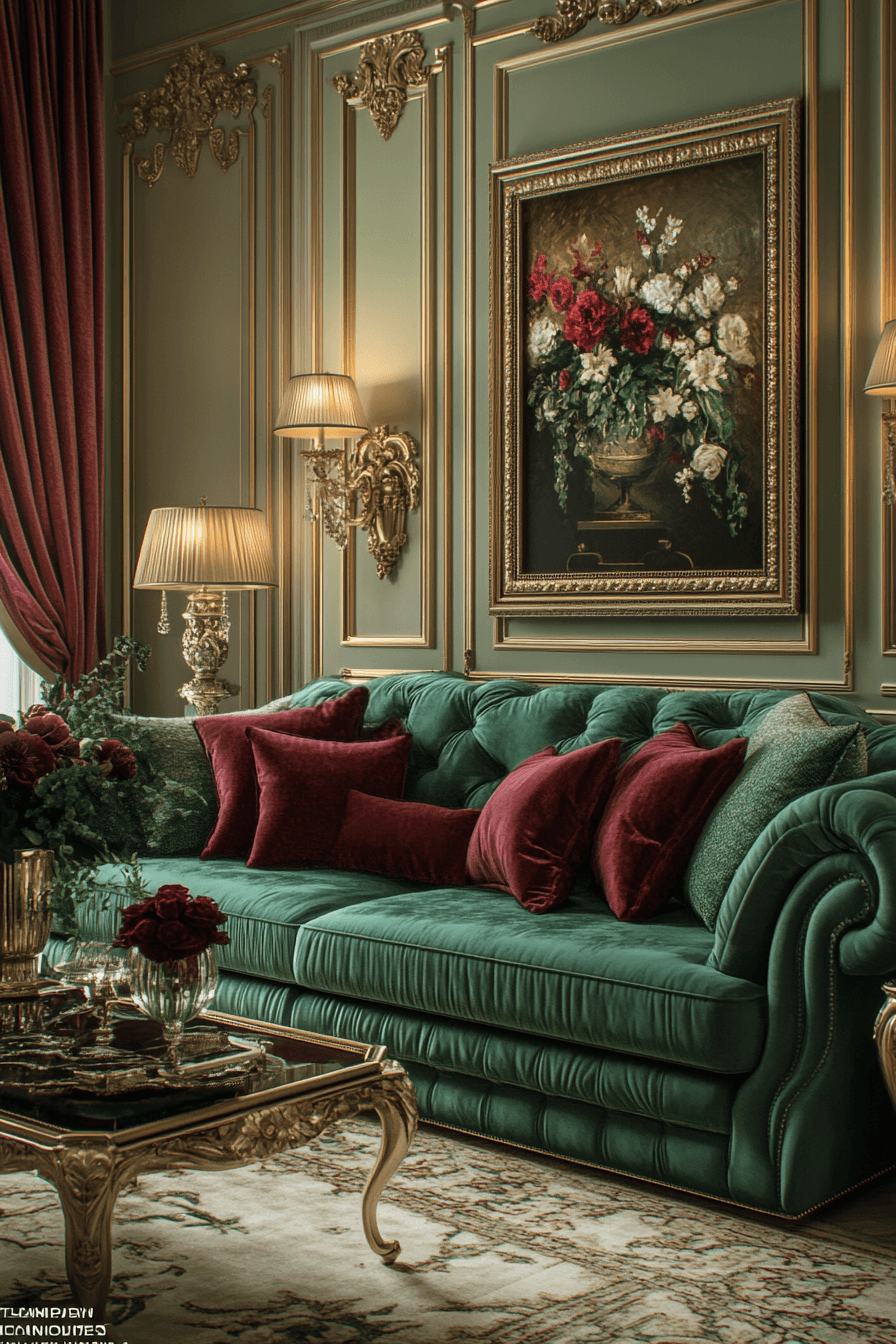 Jade shades create grounded sophistication within luxurious jewel tone decor palettes. The deep green hue feels vibrant yet balanced. Jade works beautifully in ceramics, accent furniture, or wall details. Metallic gold finishes enhance its richness. The color introduces elegance while maintaining warmth. Tap to discover jade allure jewel tone decor ideas.
