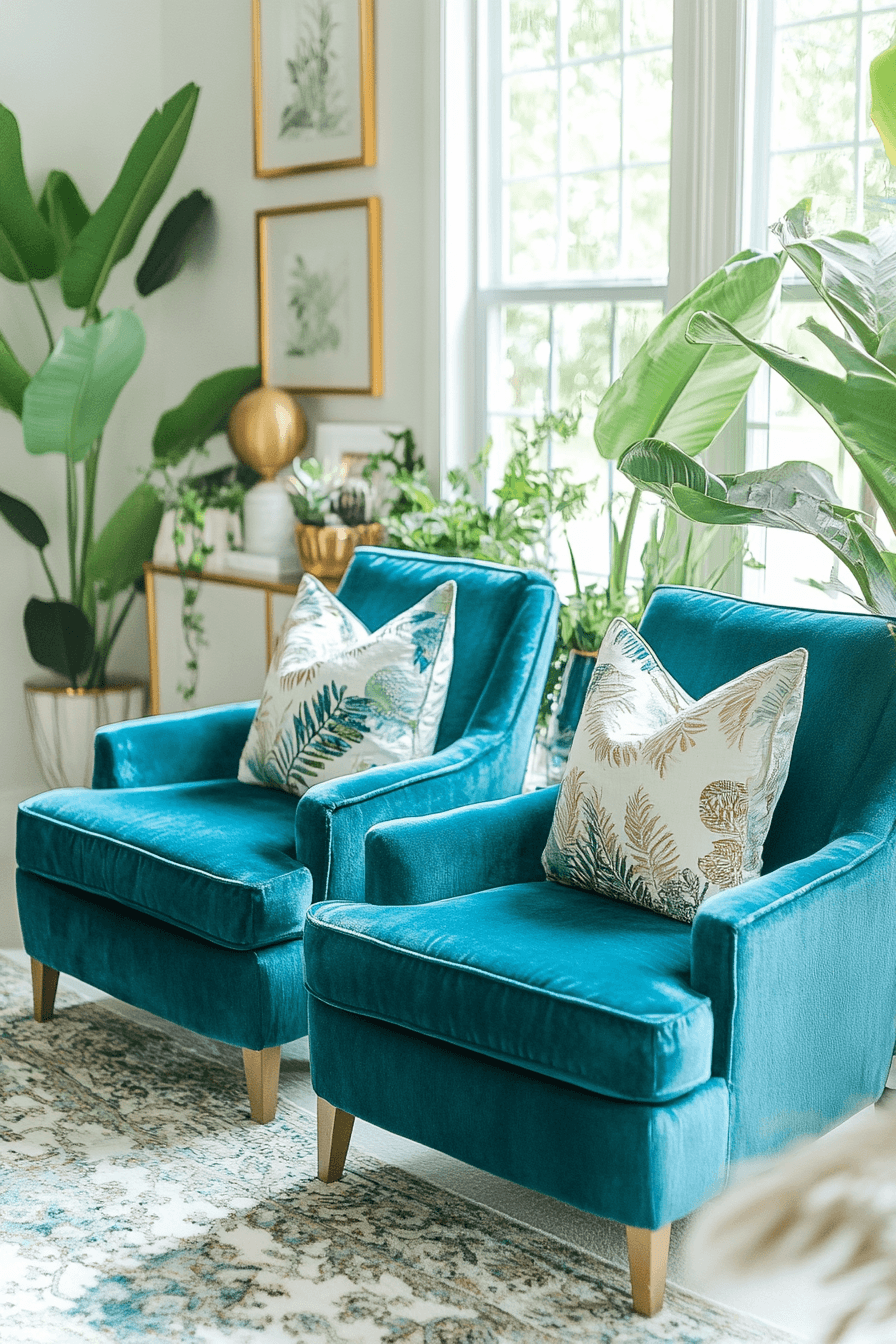 Turquoise hues bring lively freshness to vibrant jewel tone decor palettes. The blue-green shade balances brightness and depth beautifully. Turquoise works wonderfully in ceramics, accent walls, or decorative textiles. It pairs well with both warm and cool tones for versatility. Combined with gold accents, the look feels fresh and upscale. Click to explore turquoise-inspired jewel tone decor inspiration.