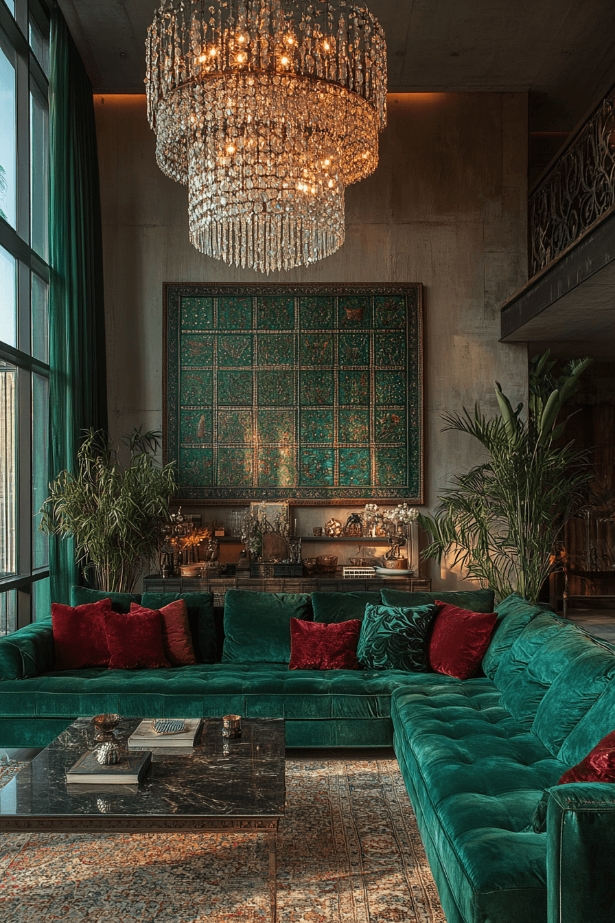Jewel tone living room ideas bring the opulence and drama of precious gems right into your home’s heart. These 29 stunning designs showcase how emerald greens, sapphire blues, and amethyst purples create spaces that feel both luxurious and deeply personal. From velvet sofas to metallic accents, each jewel tone adds layers of richness and sophistication that transform ordinary living rooms into extraordinary gathering spaces. Whether you embrace bold saturated colors or subtle jewel accents, these luxurious living room ideas will help you create a space that radiates elegance, creativity, and timeless glamour.