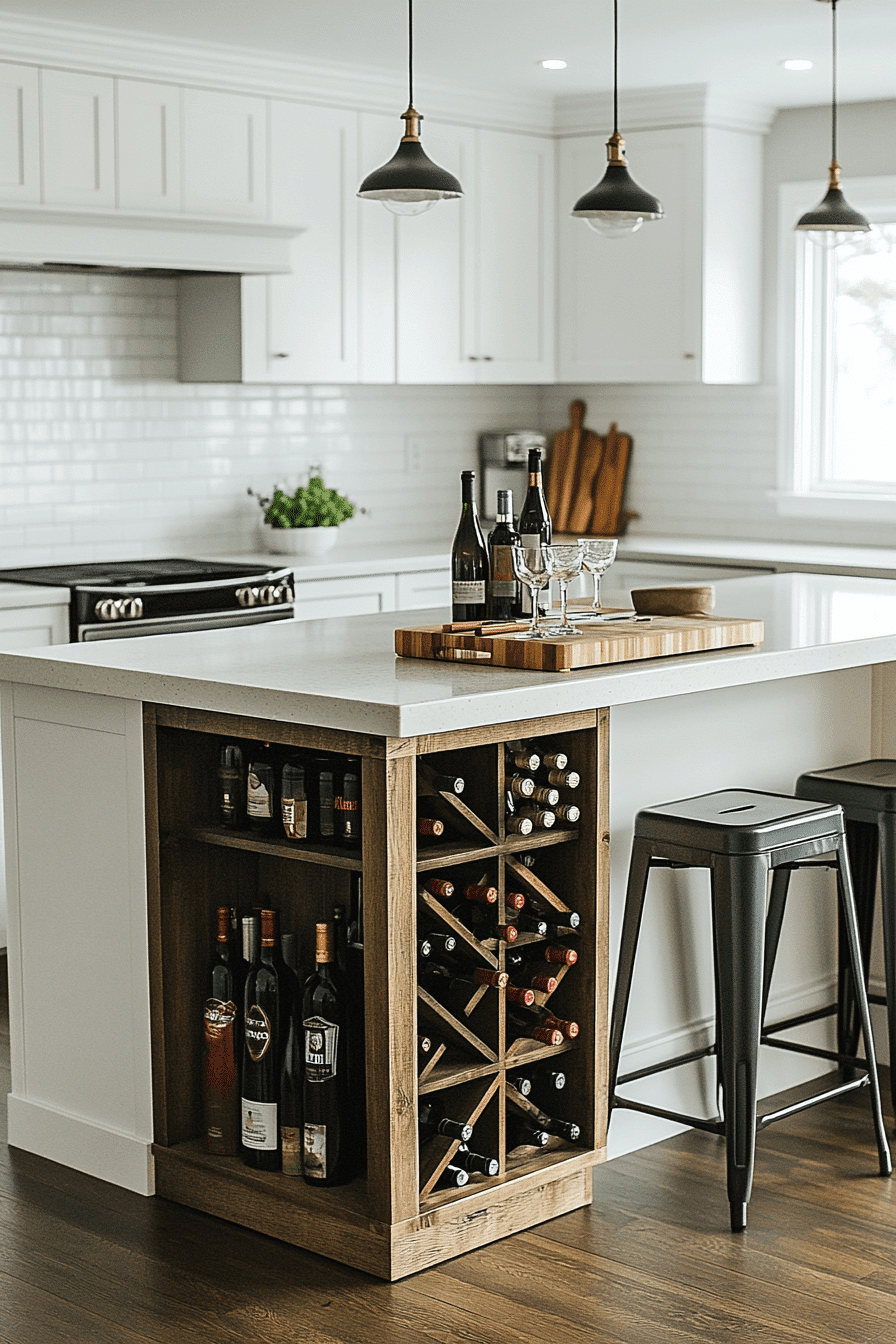 A scaled-down island brings bar functionality without crowding, aligning with mini bar ideas small spaces design. Under-counter storage keeps essentials close. Neutral finishes maintain balance. Optional seating adds flexibility. Ideal for small kitchens.