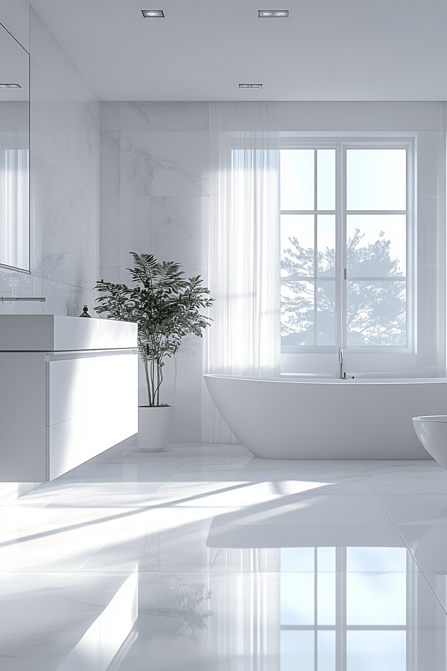 Crisp, uninterrupted white surfaces can shape a minimalist bathroom into a bright and calming retreat where light moves freely and the entire space feels more expansive. By keeping walls, flooring, and fixtures within the same tonal range, the design removes visual clutter and enhances architectural clarity. Subtle textures such as matte tiles, woven towels, or soft stone finishes introduce depth without disrupting cohesion. This minimalist bathroom approach creates a peaceful, spa-like atmosphere that feels both modern and timeless. The overall effect is clean, airy, and effortlessly refined. See how an all-white minimalist bathroom can refresh your daily routine.