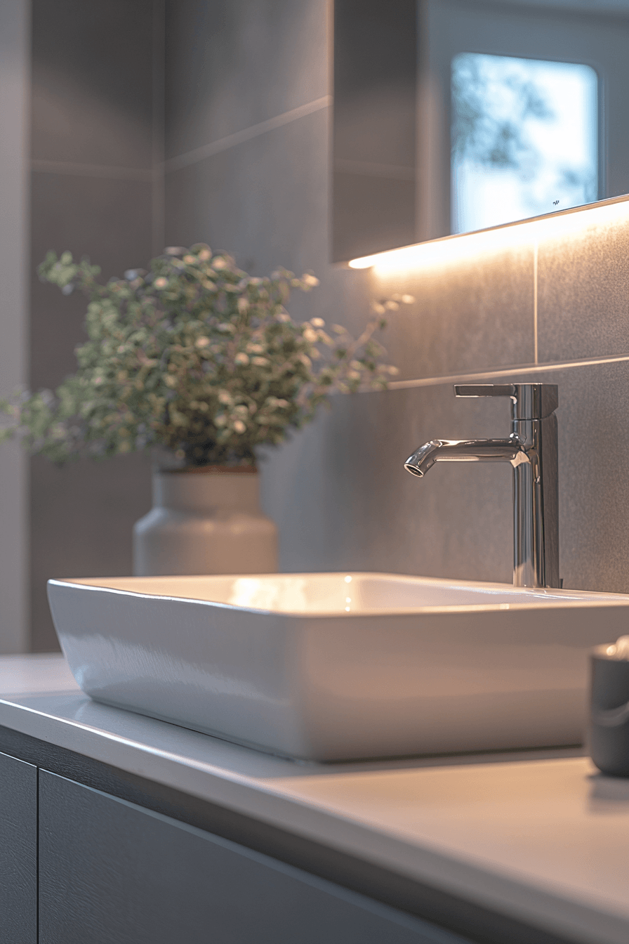 Seamless integration defines a minimalist bathroom where the sink is built directly into the countertop, creating a smooth and uninterrupted surface that feels refined and cohesive. This design eliminates visible joins and simplifies maintenance. Clean-lined fixtures enhance the overall geometry and visual clarity. The focus shifts to material quality rather than decorative detail. Every element contributes to a polished and modern look. Explore how integrated sinks can elevate your minimalist bathroom design.