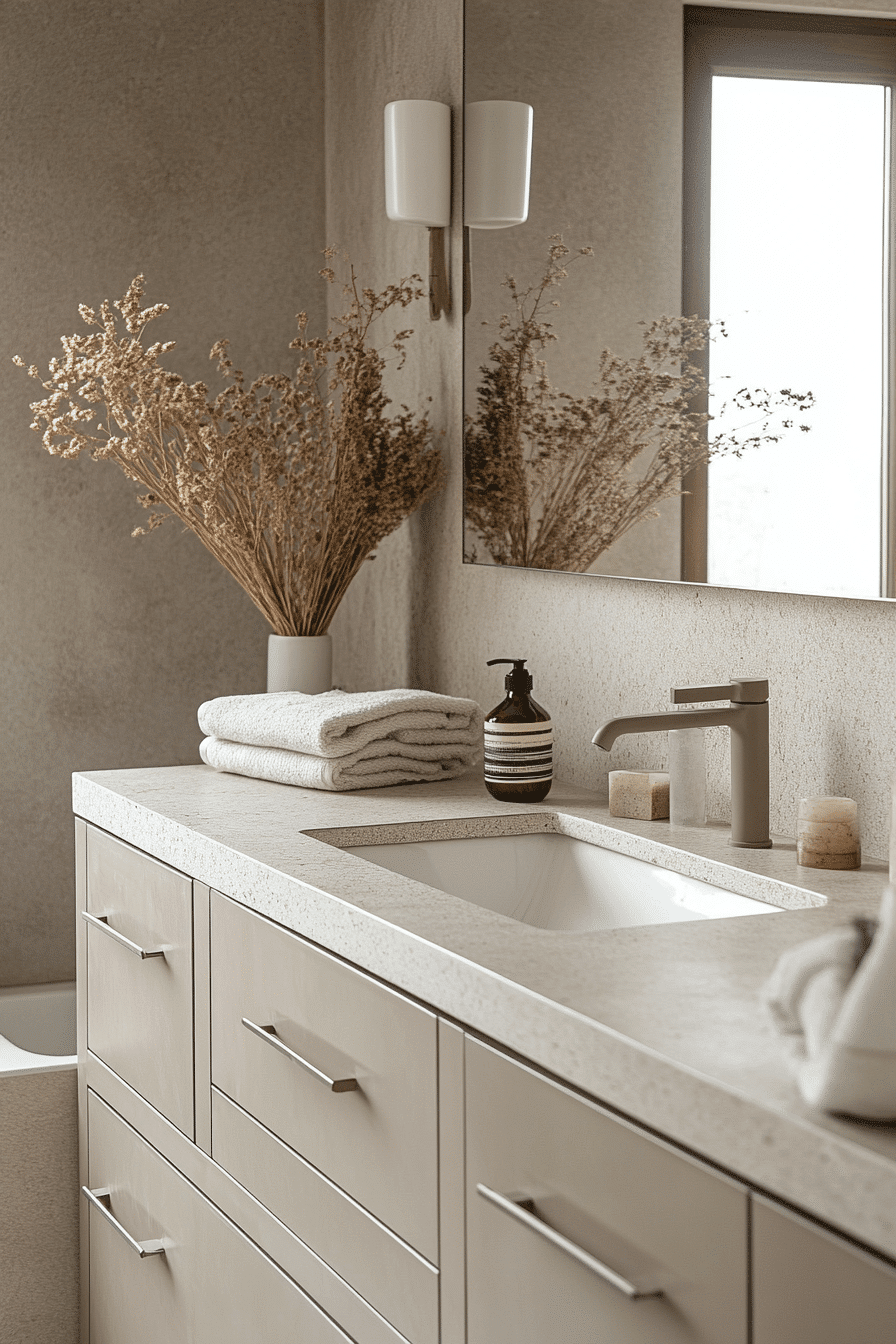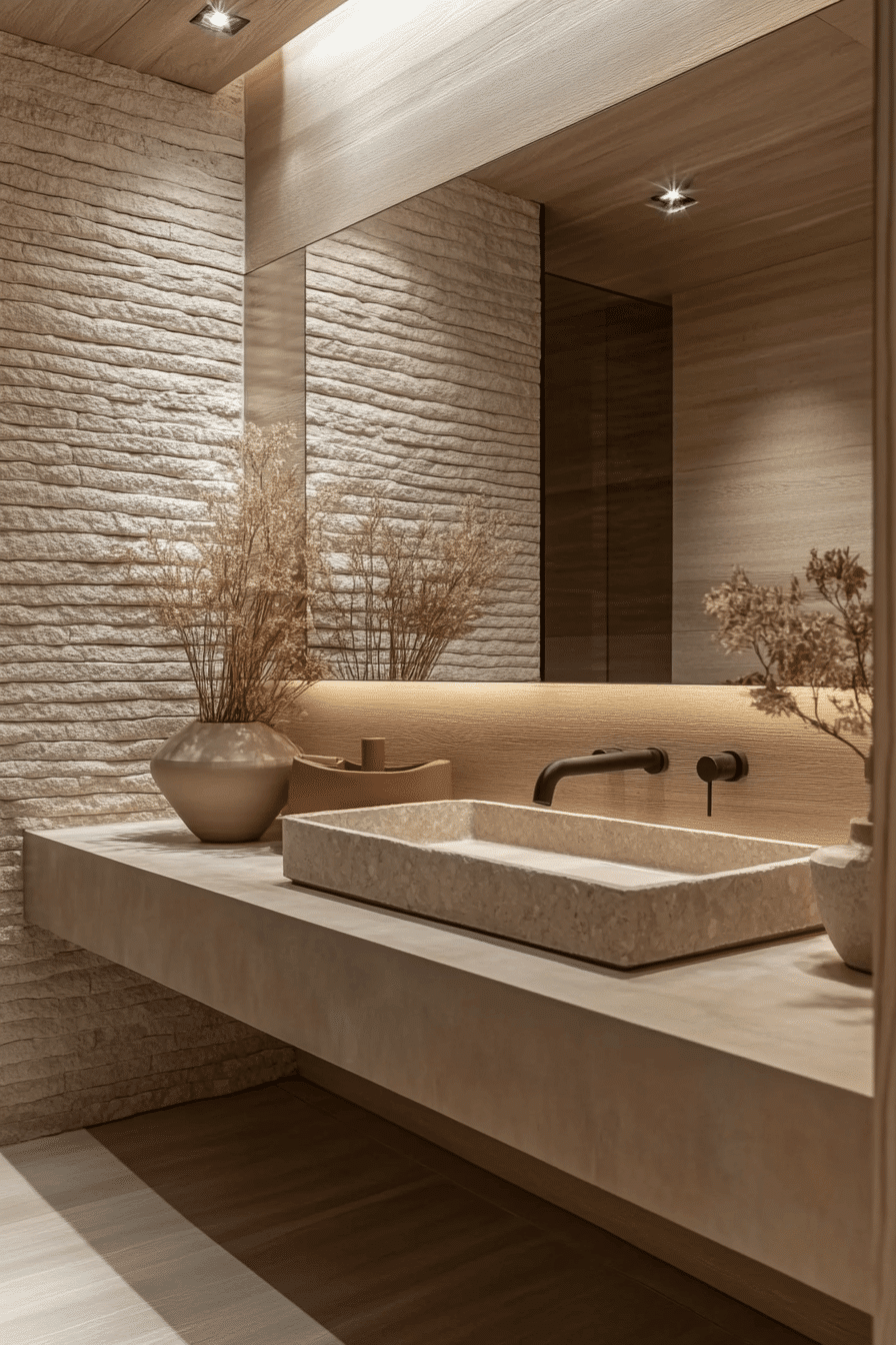 Subtle layering of neutral tones allows a minimalist bathroom to feel warm and dimensional while maintaining a serene and uncluttered atmosphere. Materials such as soft stone, brushed metal, and gentle beige finishes introduce tactile richness without relying on color contrast. The palette remains cohesive, allowing form and texture to take priority. This design approach enhances calmness while avoiding a flat or sterile appearance. The result feels balanced, grounded, and modern. Discover how textured neutrals can transform your minimalist bathroom.