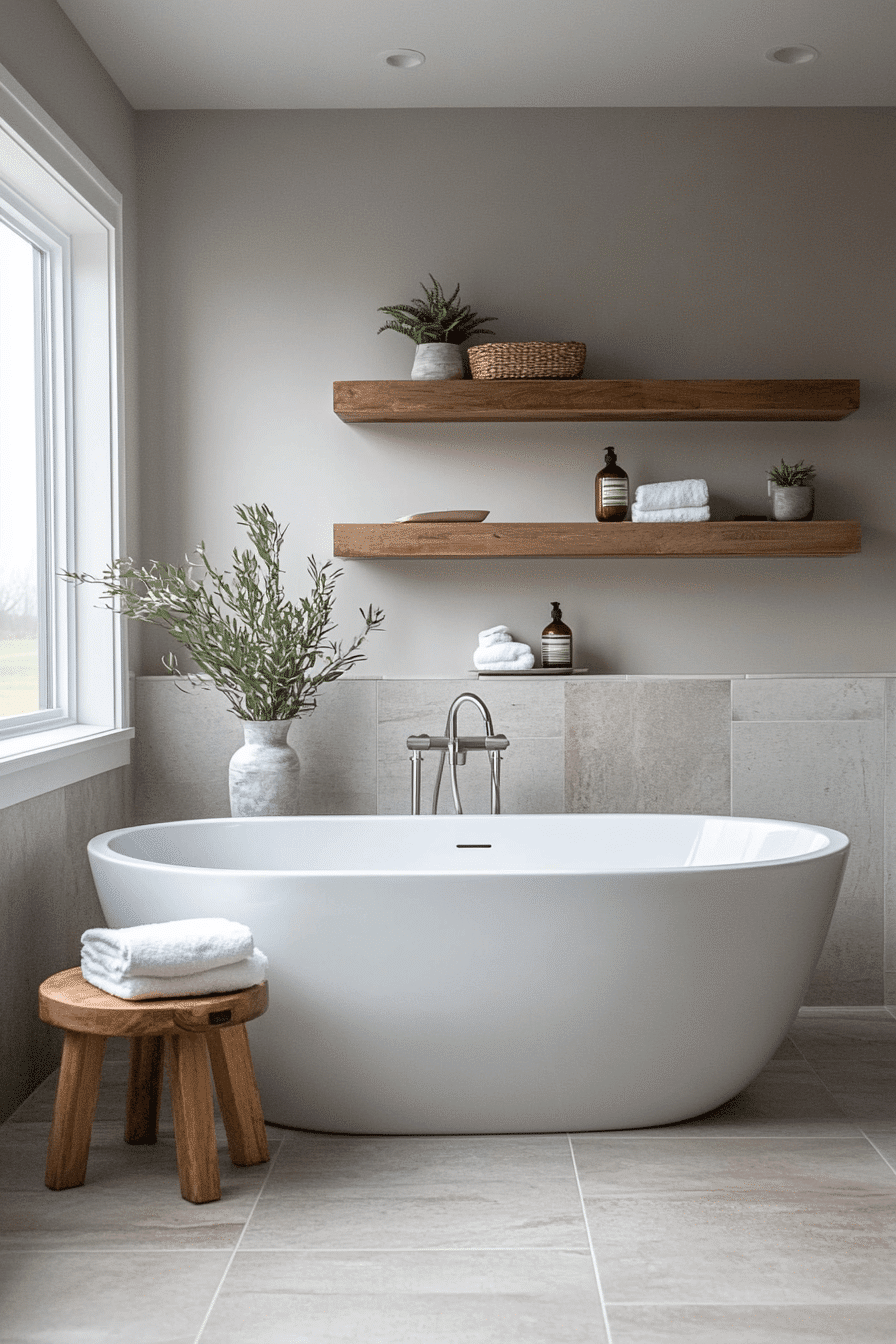Natural wood elements can introduce warmth into a minimalist bathroom while maintaining a clean and balanced design that feels both modern and inviting. Light tones add texture without overwhelming the space. Features such as floating vanities or shelving provide both function and visual interest. The contrast between wood and neutral surfaces creates harmony. The overall atmosphere feels calm and grounded. Explore how wood accents can enhance your minimalist bathroom.