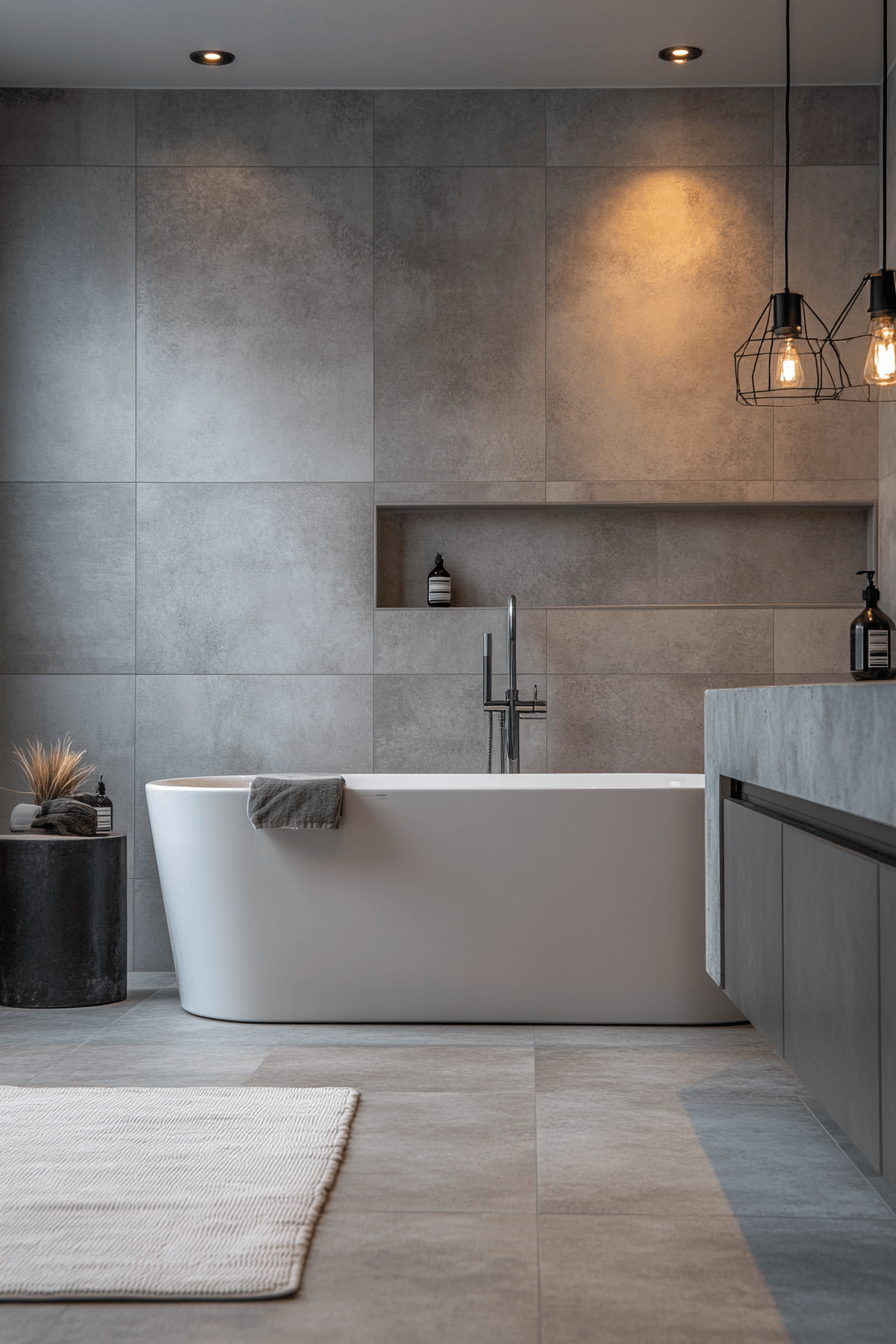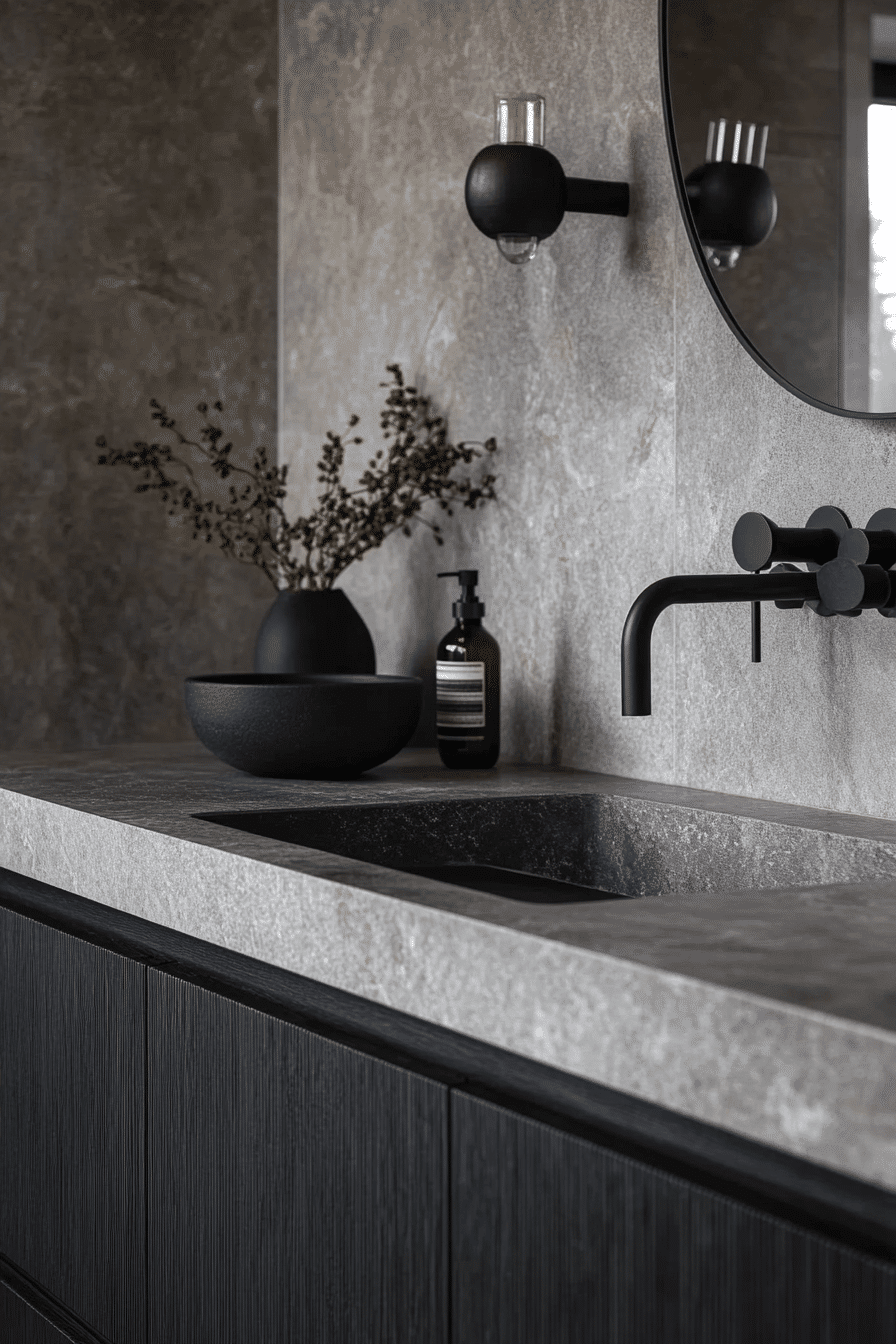 Raw textures can introduce character into a minimalist bathroom when concrete-inspired finishes are used to create a modern and architectural aesthetic. Muted tones provide a neutral foundation that complements other materials. The contrast between rough surfaces and clean lines adds depth. The design remains controlled and balanced. The result feels bold yet refined. Discover how concrete finishes can elevate your minimalist bathroom.