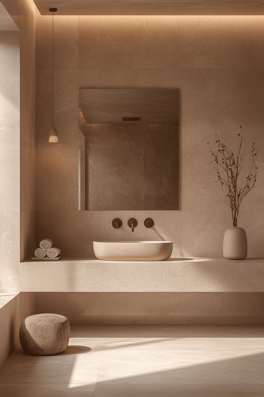 Soft warmth can be introduced into a minimalist bathroom through beige tones that create a welcoming and relaxed environment without adding visual noise. Unlike stark white, this palette feels more inviting while still maintaining clarity and balance. When combined with natural materials, the design gains subtle layers of texture. The overall atmosphere feels calm, modern, and approachable. This approach softens minimalism without compromising its core principles. Discover how beige tones can enhance your minimalist bathroom.
