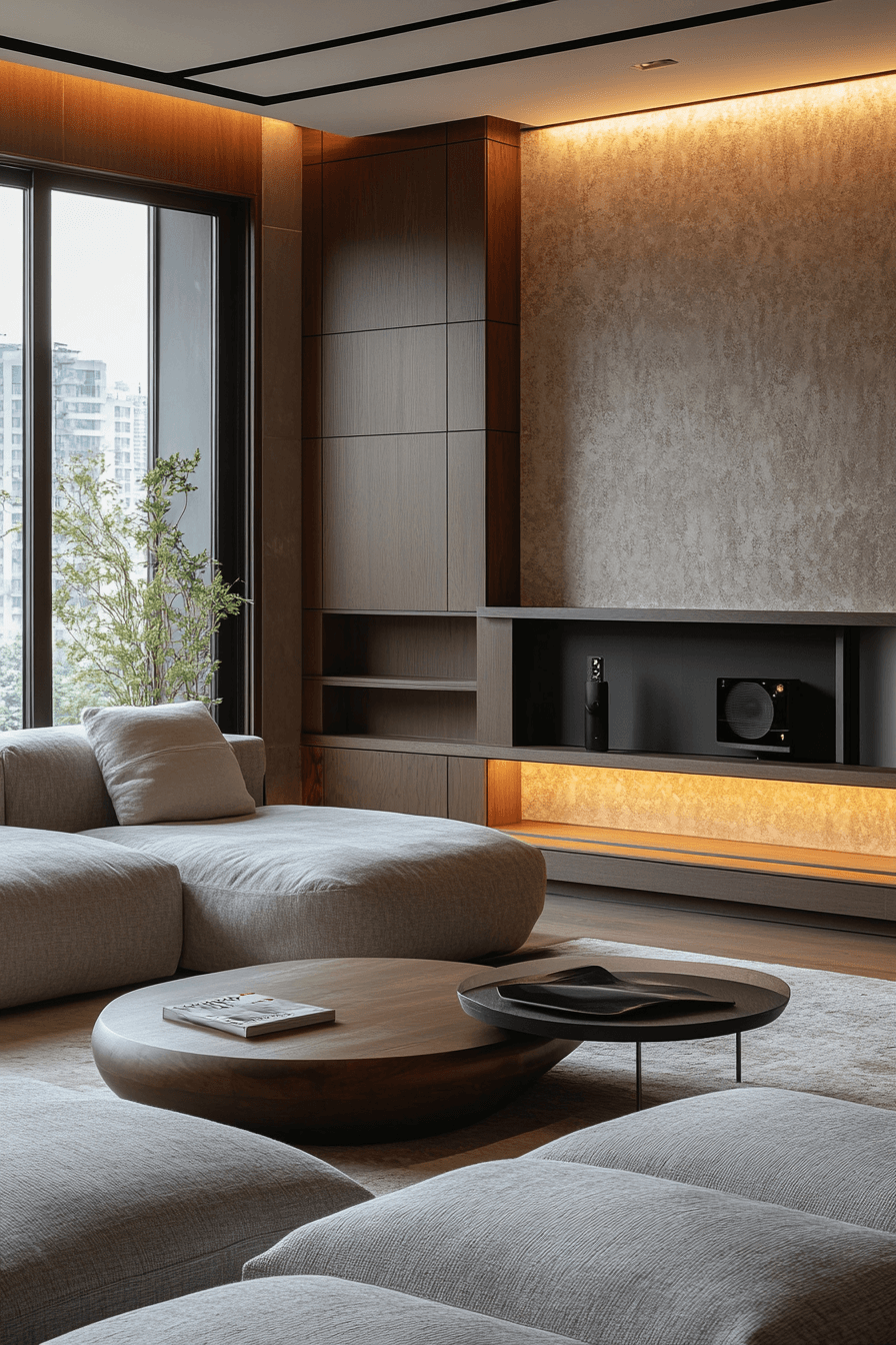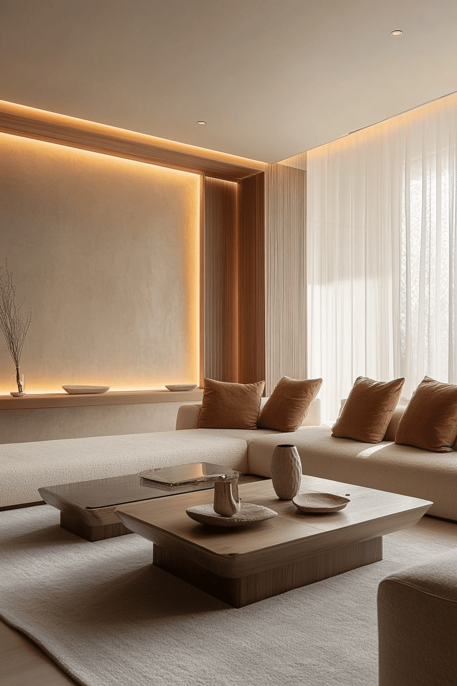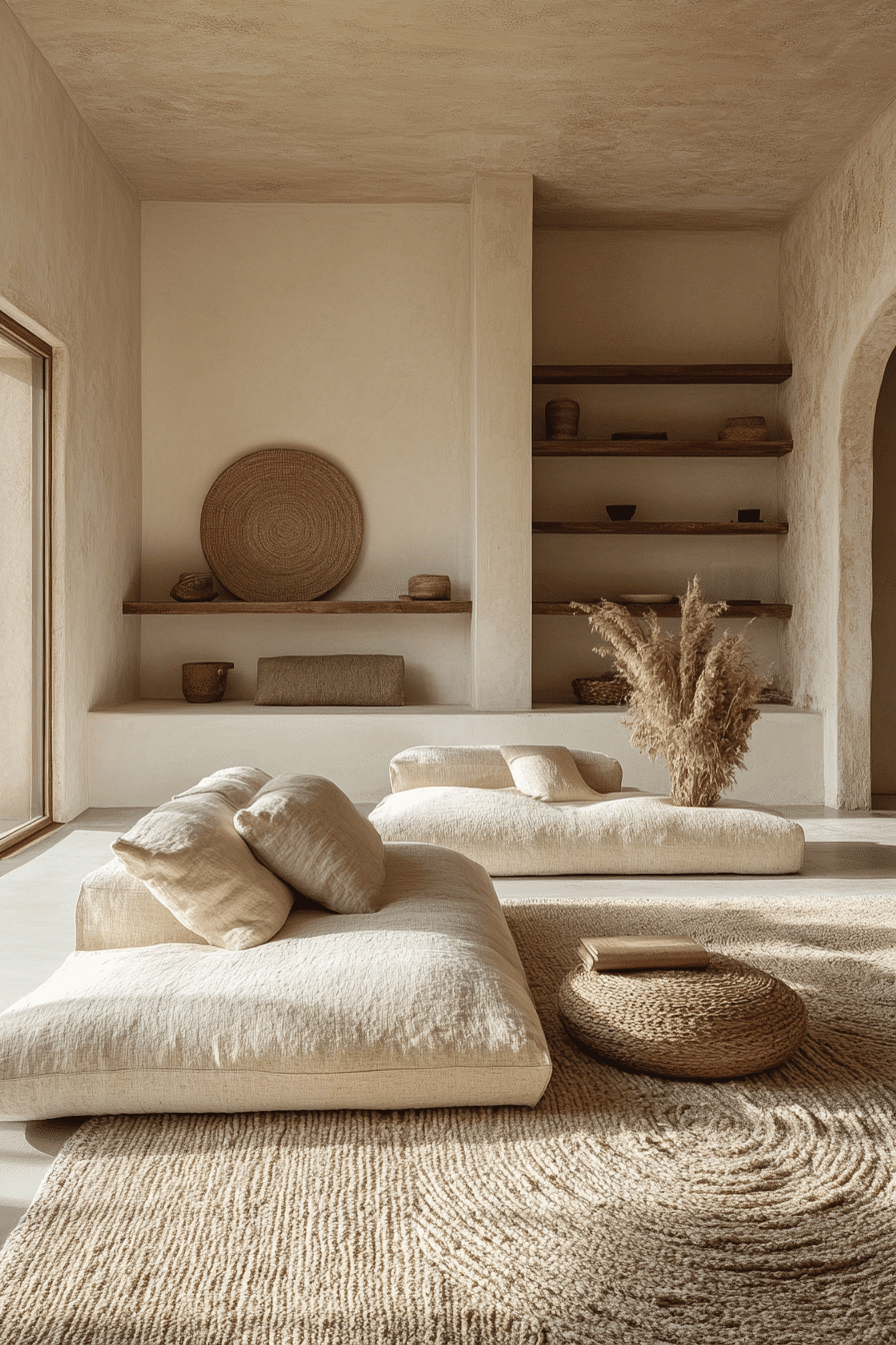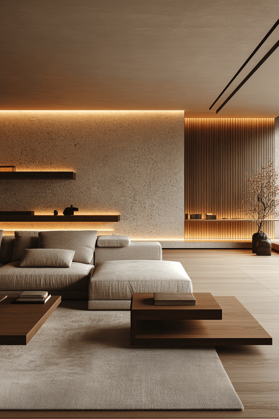 Low seating creates a sleek and grounded minimalist living room with a clean, horizontal flow. Shorter furniture makes the space feel larger and more open. Focus shifts to textures, lighting, and subtle details. This minimalist living room feels modern yet comfortable. Simplicity enhances the overall aesthetic. Explore more low-profile minimalist living room inspiration.