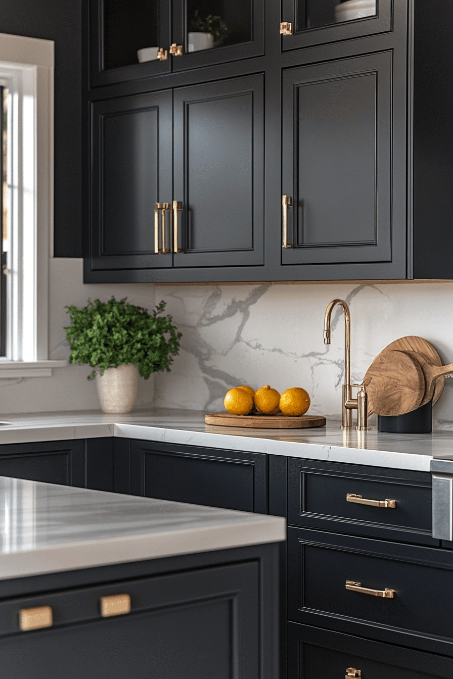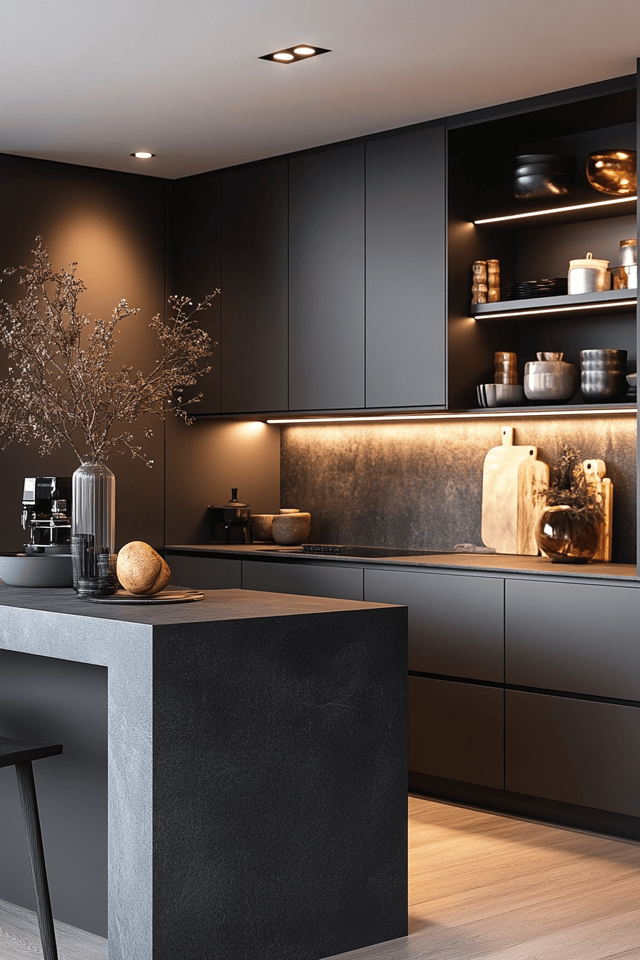 Matte black surfaces introduce bold depth into modern kitchen cabinet design by creating contrast while maintaining a refined and contemporary edge. The non-reflective finish grounds the space visually. Metallic accents enhance the richness of the color. Light countertops provide balance. Clean lines keep the aesthetic modern. Explore more matte black cabinet inspiration.