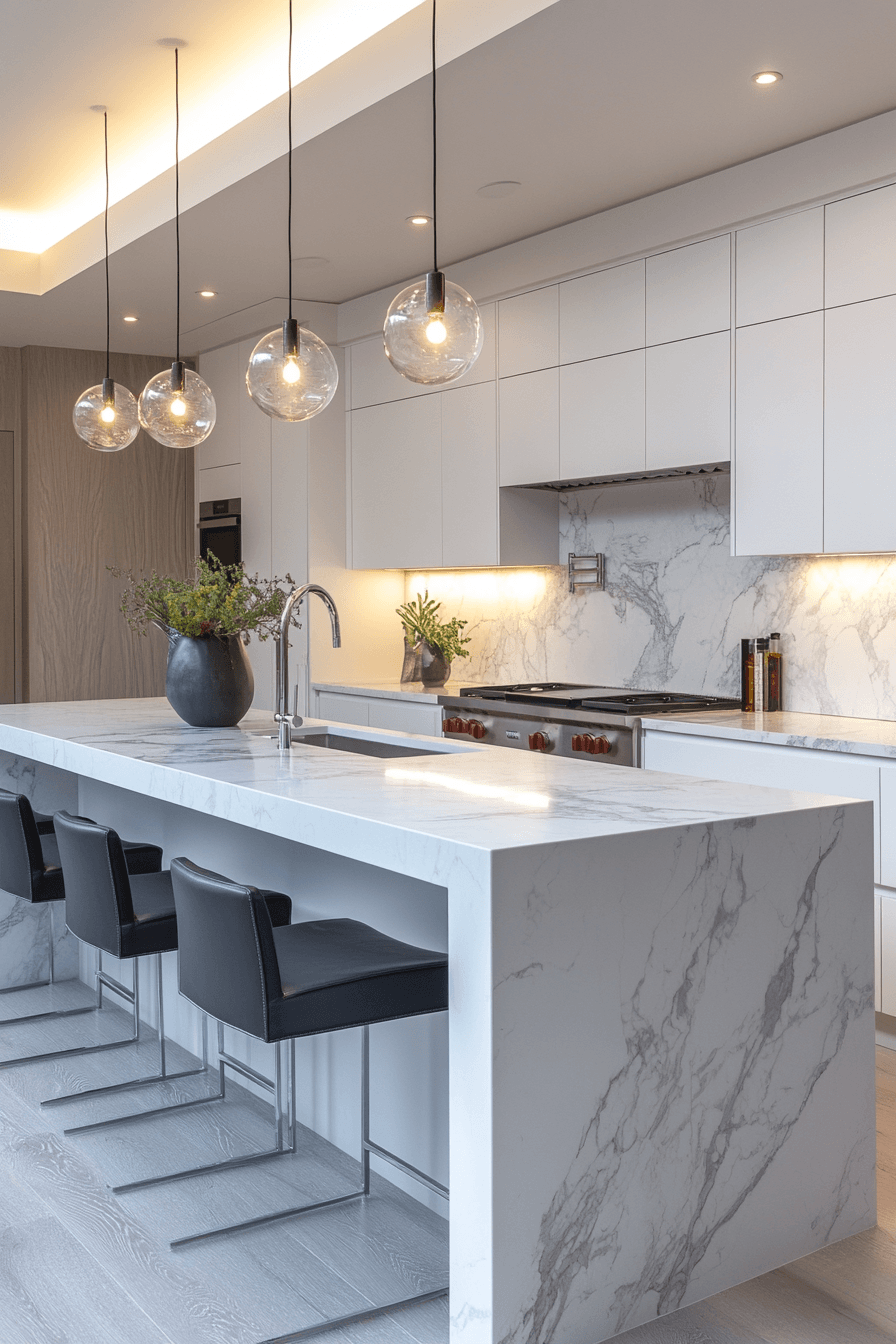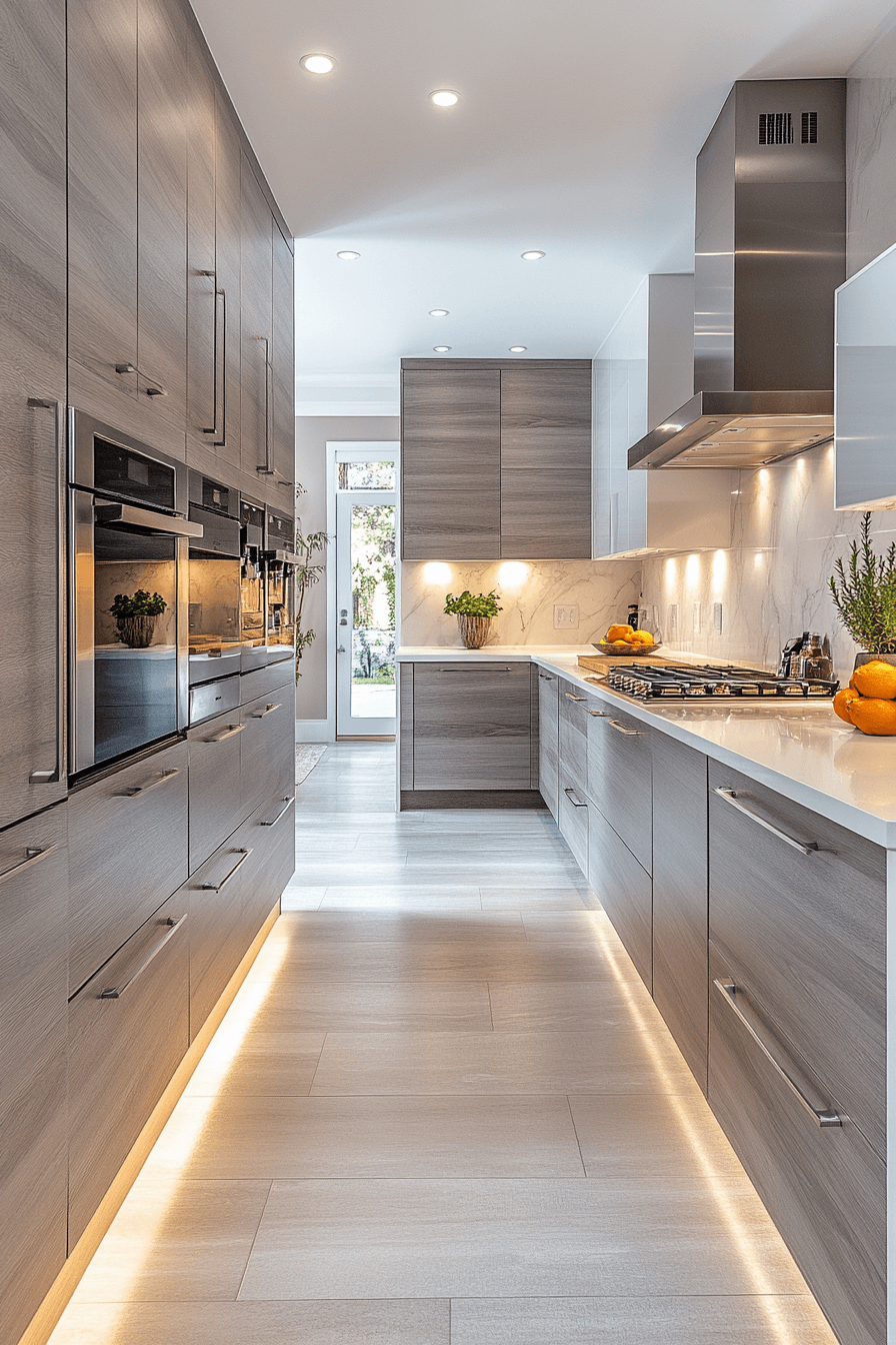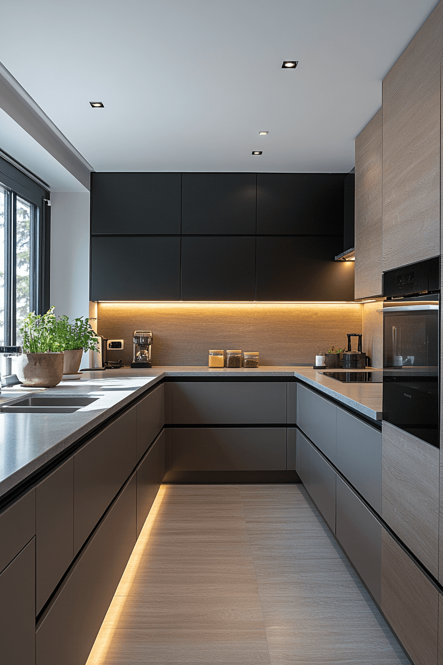 Raised cabinetry arrangements redefine modern kitchen cabinet design by creating a floating effect that enhances openness and visual flow throughout the kitchen. Cabinets positioned above the floor introduce a lighter aesthetic. Under-cabinet lighting strengthens the effect. Neutral finishes maintain simplicity. The design feels contemporary and innovative. Explore more floating cabinet ideas.