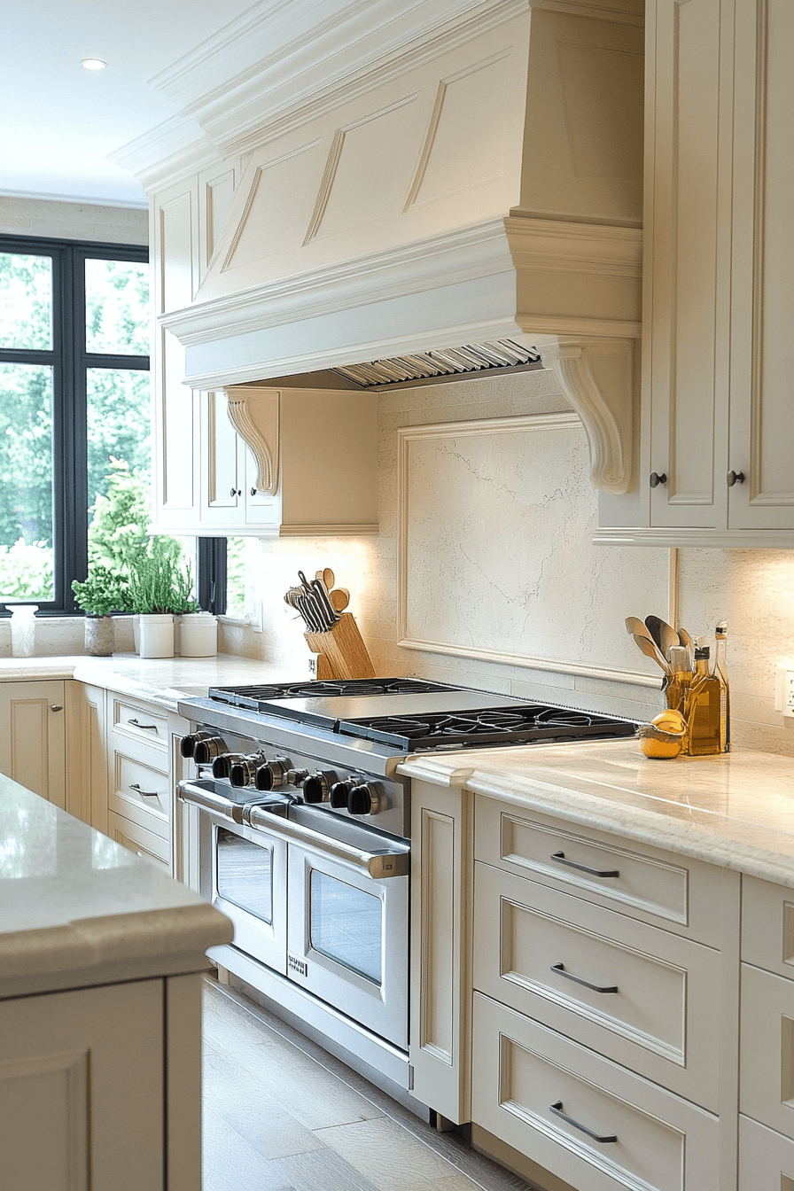 Soft cream tones warm modern kitchen cabinet design by adding brightness with a gentle undertone that feels inviting and refined across the space. Sleek finishes maintain a contemporary look. Reflective elements enhance openness. Metallic accents complete the design. The result feels cozy yet modern. Discover more cream cabinet inspiration.