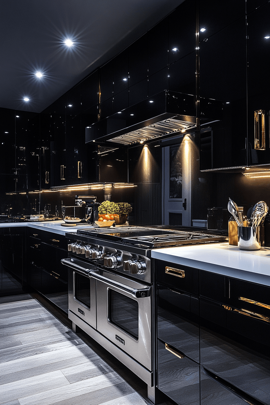 High-gloss black cabinetry defines modern kitchen cabinet design by delivering bold contrast and reflective depth that transforms the kitchen into a statement-driven space. Light countertops create striking balance. Metallic accents elevate the look. Clean lines maintain structure. The result feels dramatic and refined. Explore more black cabinet inspiration.