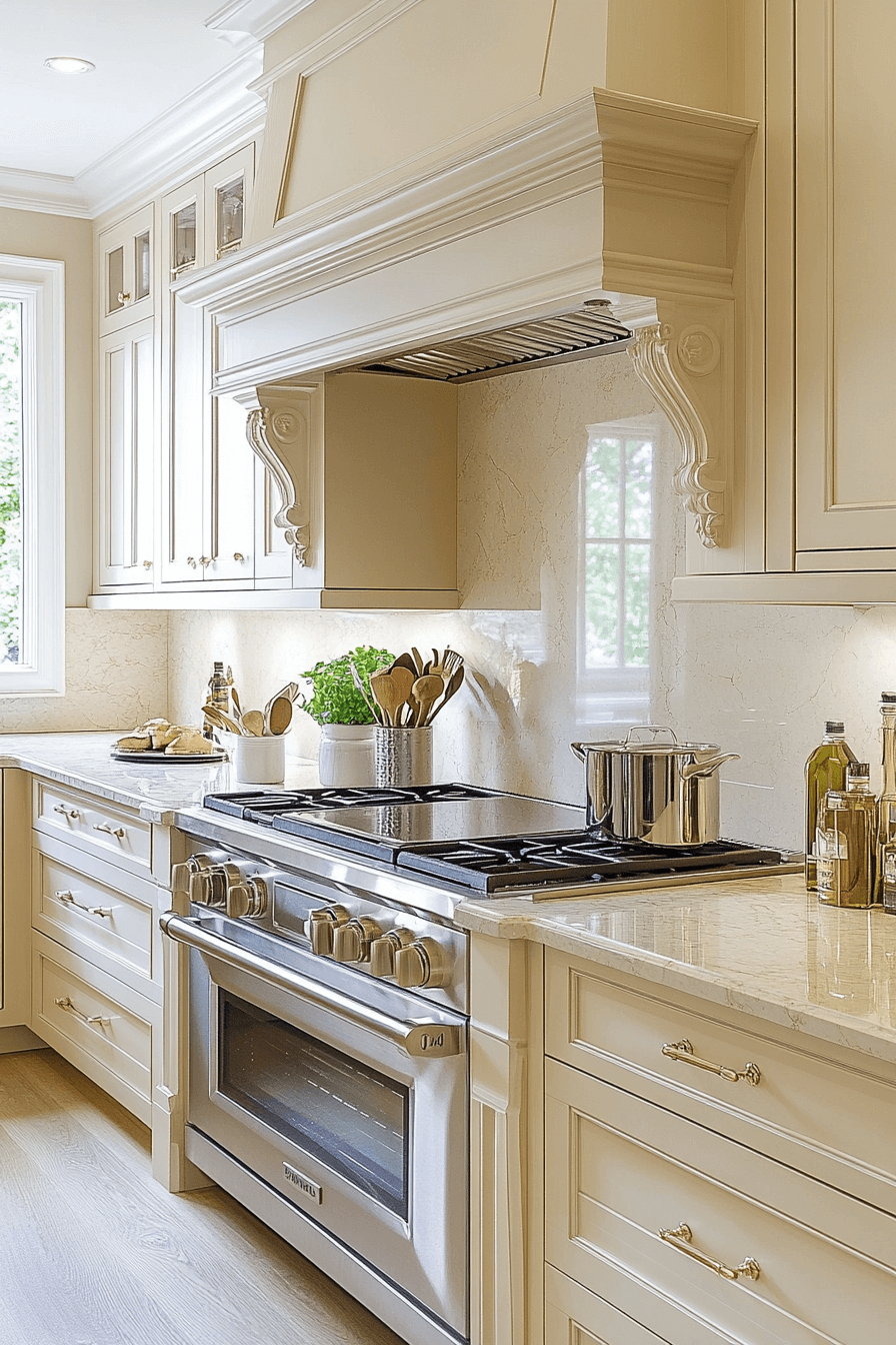Soft golden undertones come alive when pine kitchen cabinets bring brightness and warmth into the heart of the home. The light grain pattern adds texture without overwhelming the design. Open layouts allow the natural beauty of pine to breathe. Surrounding reflective surfaces enhance the glow and amplify the inviting feel. The kitchen feels cheerful, grounded, and refined.