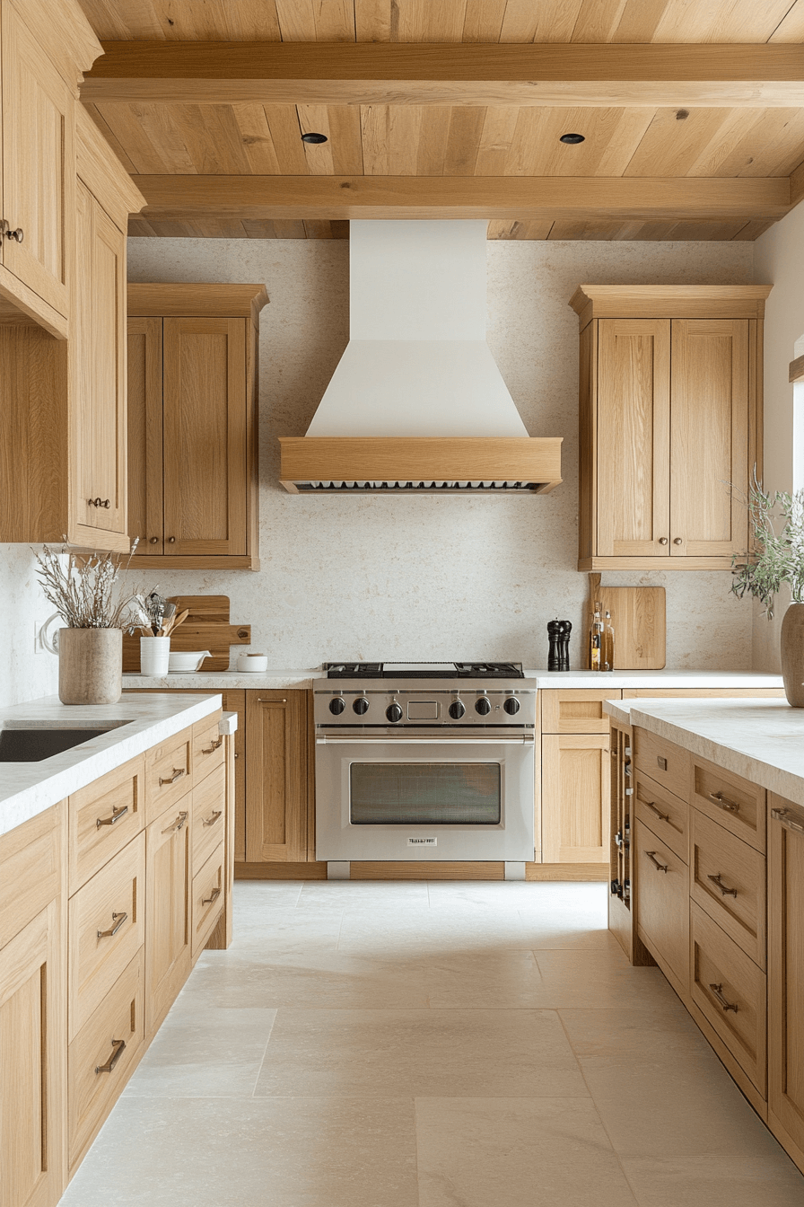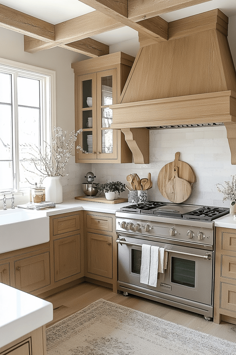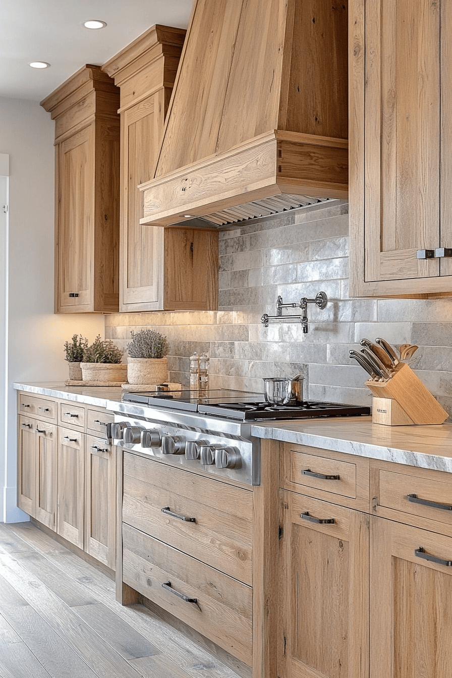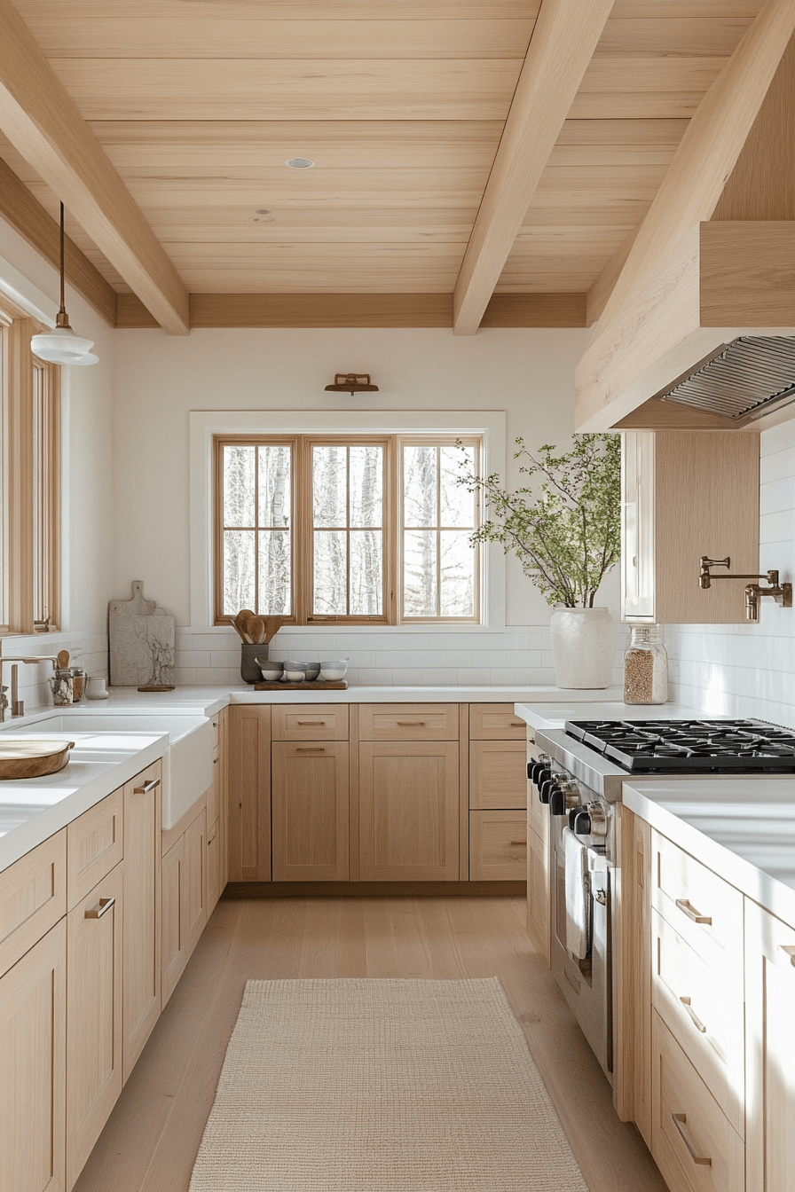A warm sense of balance fills the kitchen when pine kitchen cabinets highlight their naturally soft tone and smooth, understated finish. The gentle grain introduces character while keeping the space visually calm. Pine works effortlessly across both traditional and contemporary styles, offering flexibility without feeling generic. Paired with neutral counters and muted backsplashes, the room feels welcoming and cohesive. The atmosphere is relaxed yet polished.