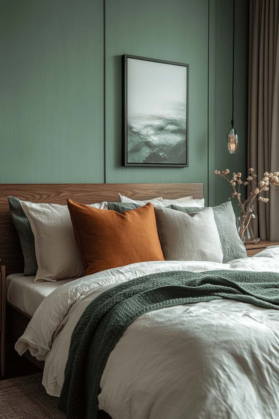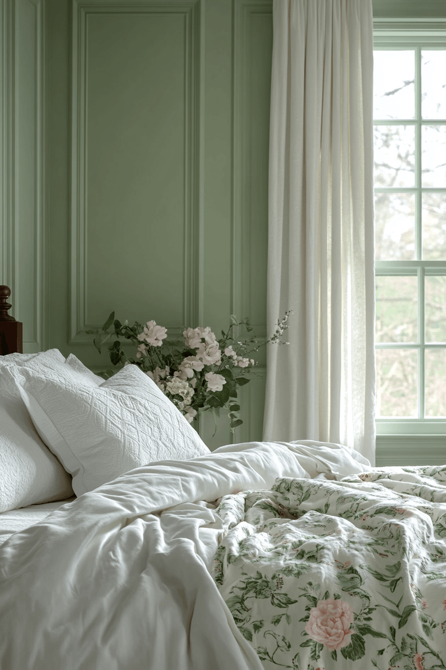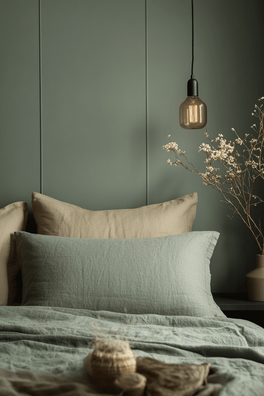 A peaceful hideaway forms in a sage green bedroom designed for relaxation. Muted green walls provide a soothing backdrop. Soft bedding enhances comfort and warmth. Neutral décor maintains balance. The bedroom becomes a quiet escape. Browse more relaxing sage bedroom inspiration.