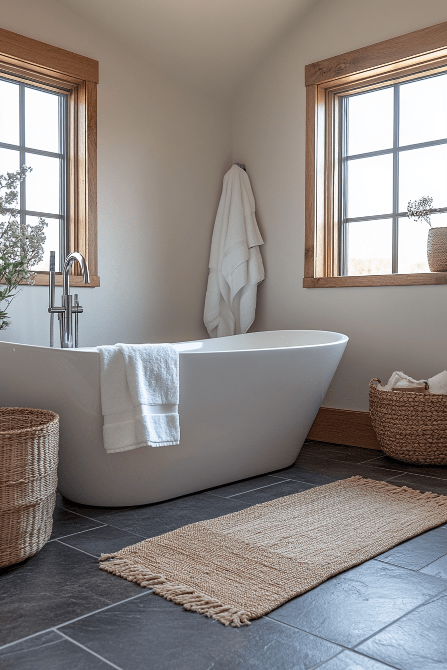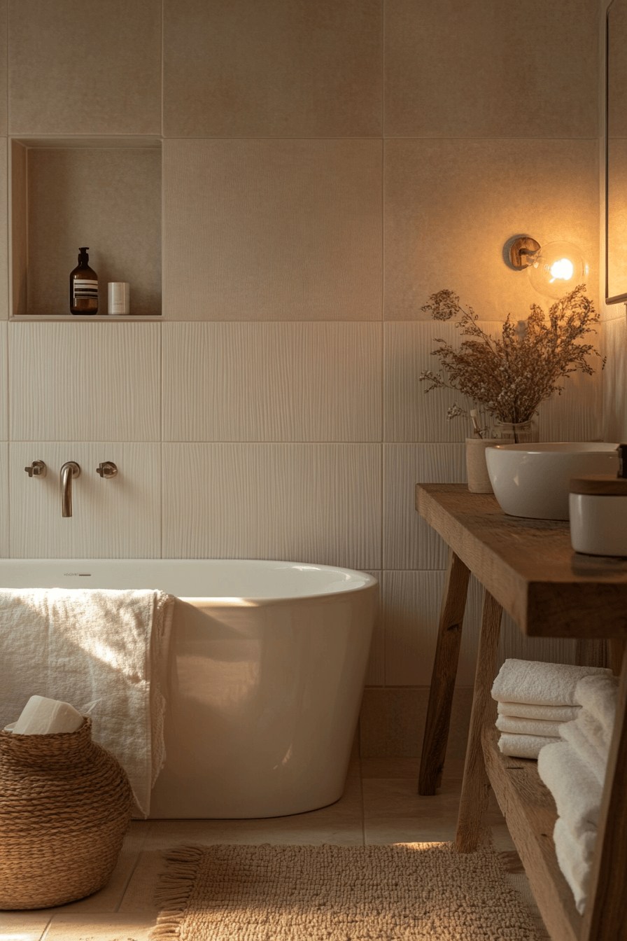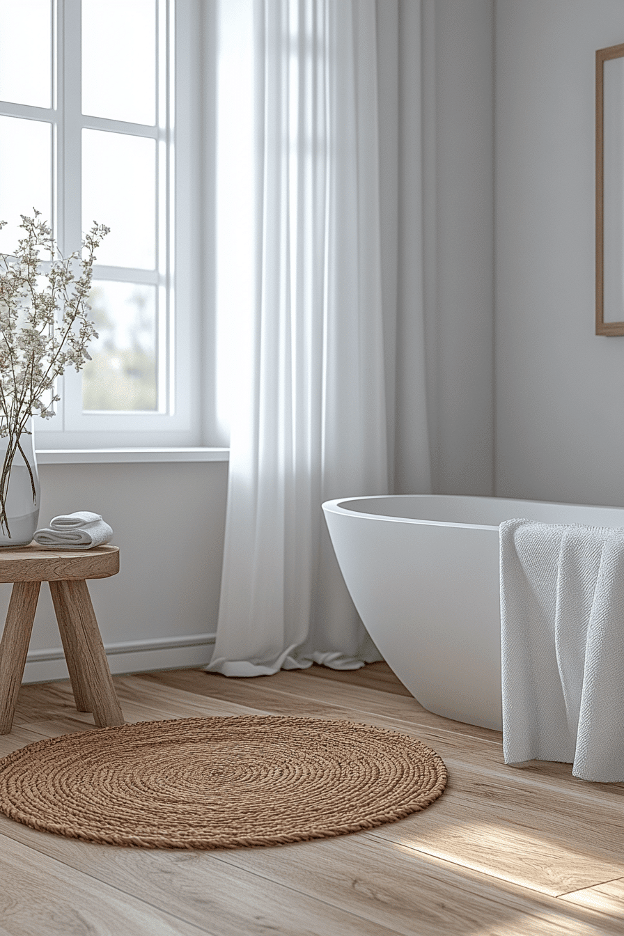 Focusing on comfort and warmth creates a scandi bathroom that feels inviting and restful while still maintaining its clean and minimal structure. Soft textiles and warm lighting enhance the overall atmosphere. Natural materials add a grounding effect. The space feels lived-in yet uncluttered. This approach reflects the essence of hygge living. Bring warmth into your bathroom with these cozy design ideas.