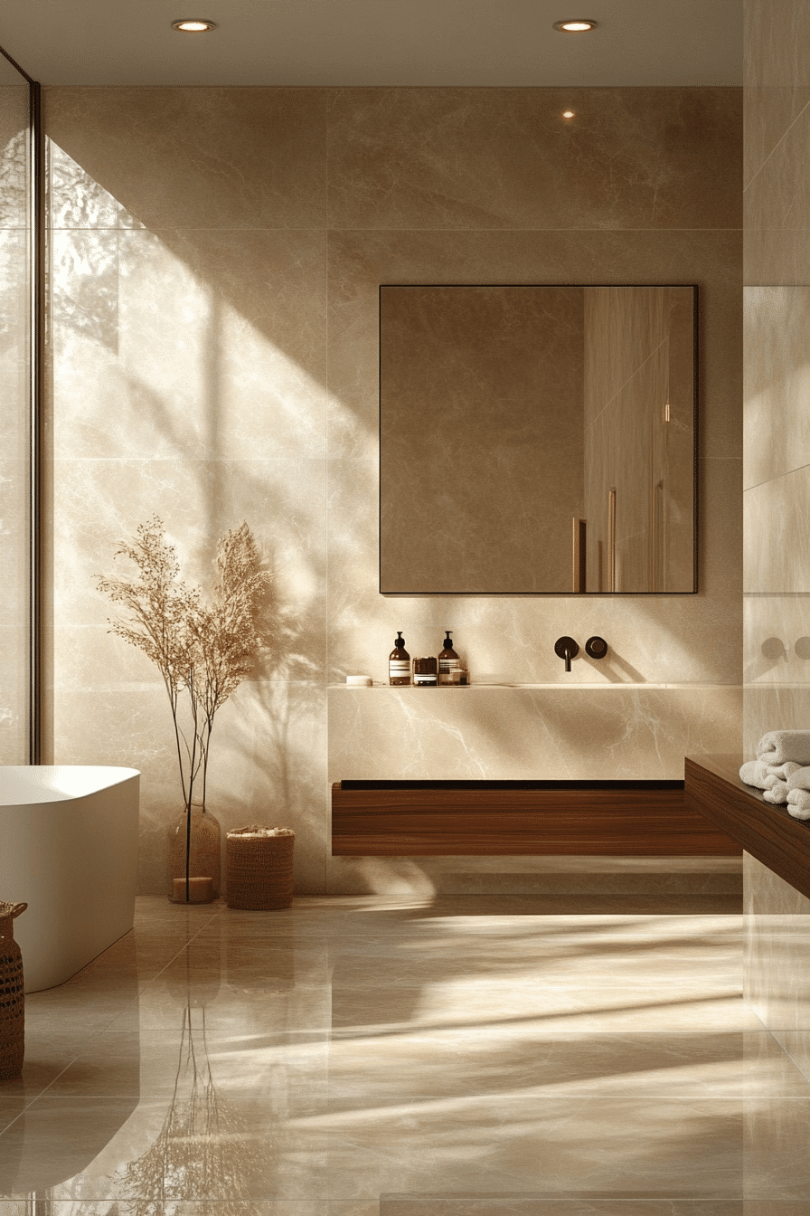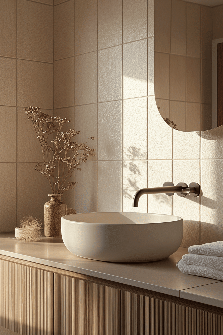 Working with sand-toned hues introduces a soft warmth into a scandi bathroom that feels more inviting than stark white while still remaining minimal. These tones blend beautifully with wood and matte finishes. The palette creates a calming and balanced environment. Subtle variations keep the design interesting. The result is timeless and soothing. See how warm neutrals can transform your bathroom space.