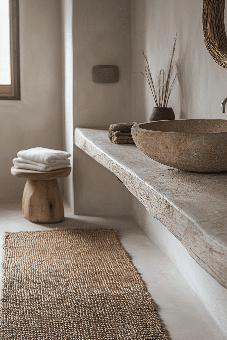 Showcasing raw stone elements brings natural texture and authenticity into a scandi bathroom while keeping the overall aesthetic grounded and minimal. The organic surface adds depth without overwhelming the design. Paired with wood and soft tones, the space feels balanced. This combination creates quiet elegance. The result is modern yet timeless. Discover stone features that enhance Scandinavian bathrooms.