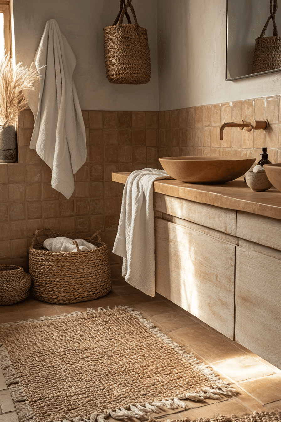 Incorporating woven storage elements introduces texture and practicality into a scandi bathroom while maintaining a clean and organized appearance. Natural materials blend seamlessly with neutral tones. These solutions keep essentials accessible without cluttering the space. The added texture softens the minimalist design. The result is both functional and inviting. Find storage ideas that balance style and utility.