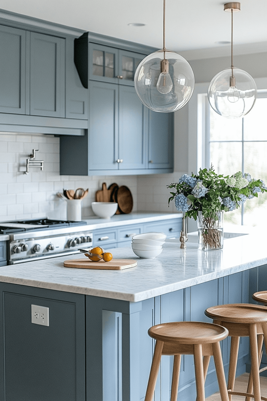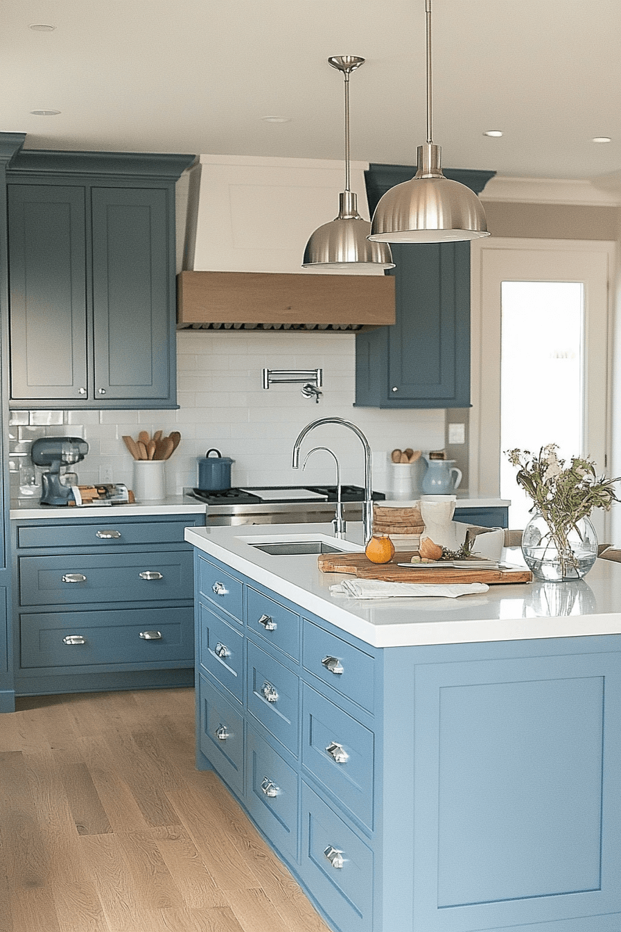 Slate blue kitchens create a beautiful sense of balance that feels both soothing and welcoming. These Slate Blue Kitchen Cabinets show how gentle color paired with thoughtful finishes can brighten a kitchen without overwhelming the space. Each design highlights how slate blue works effortlessly with light surfaces and natural textures. The result is a kitchen that feels calm, comfortable, and easy to enjoy every day. Let these Slate Blue Kitchen Cabinets inspire you to create a kitchen that feels beautifully balanced and full of quiet charm.