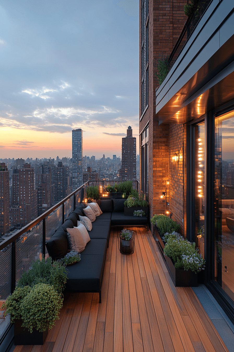 Completed with thoughtful details, a tiny balcony becomes a true escape. Every element serves a purpose. Lighting, seating, and décor work together. The space feels finished and personal. D